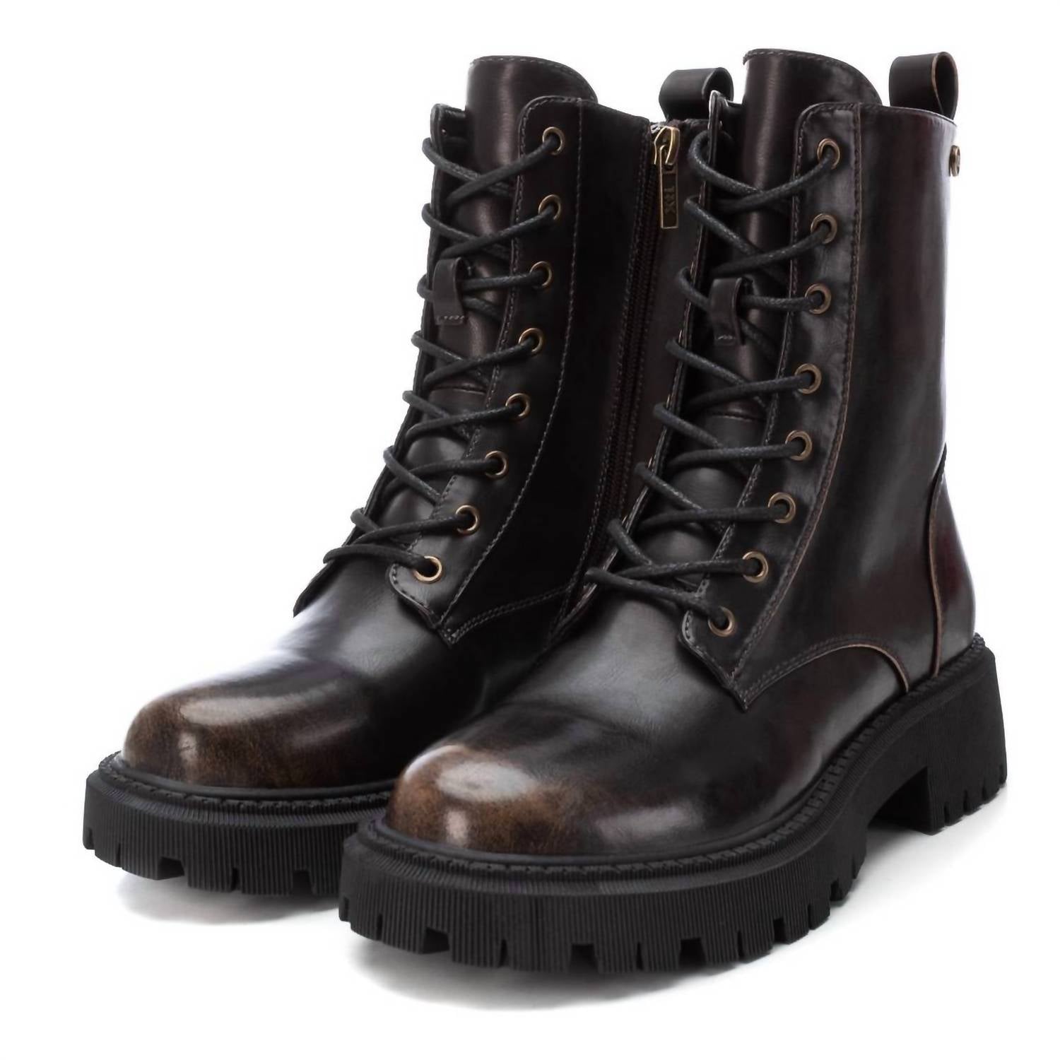 The most effortlessly cool moto boots that are just a comfortable as they are easy on the eyes. Elevate your look with the Women's Combat Booties by Xti, the epitome of casual comfort and style in sleek hue. These booties boast a 1.57" block heel and feature a round toe and faux leather composition, ensuring both durability and style. They are designed with a convenient side zipper closure and lace-up detail for an easy fit, along with a lightweight non-slip rubber sole for stability. Built with high-quality breathable materials and a padded insole, these booties promise optimal comfort for all-day wear.