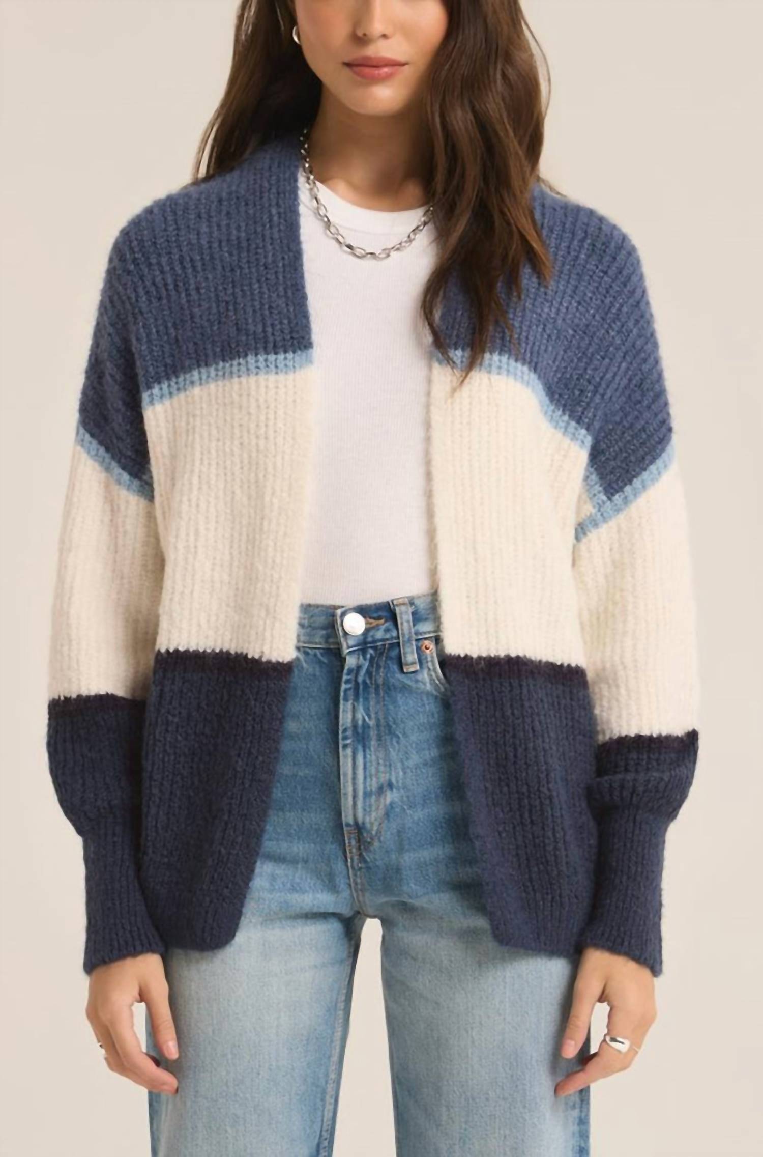 A classic fit that works just as good buttoned as it does left open. Introducing the Jones Stripe Cardigan by Z Supply, a chic addition to your wardrobe with a bold color-blocked stripe pattern. This open-front cardigan is designed with full-length sleeves and crafted from a chunky sweater yarn blend consisting of 37% Nylon, 35% Acrylic, 20% Polyester, 5% Other, and 3% Spandex. It promises a regular fit and midweight comfort, perfect for adding a fashion-forward flair to any ensemble. Care: Hand wash cold, reshape, and lay flat to dry.