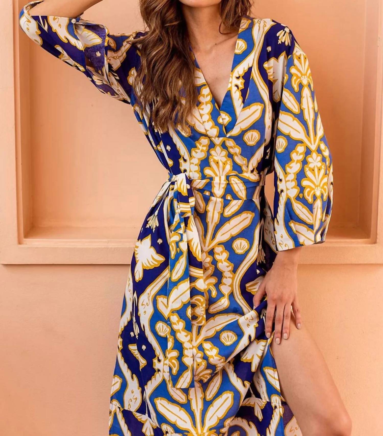 Style this maxi with your favorite statement necklace and sandals for the perfect look. Embrace effortless elegance with the Isla Cotton With Sash Maxi Dress by BEYOND by Vera, a must-have for any vacation wardrobe. This Pondi Blue maxi features three-quarter adjustable kimono sleeves and a chic A-line silhouette. Crafted from soft, breathable cotton cambric, it offers unbeatable comfort in warmer weather. The pull-on style offers ease while the optional sash allows for waist definition.