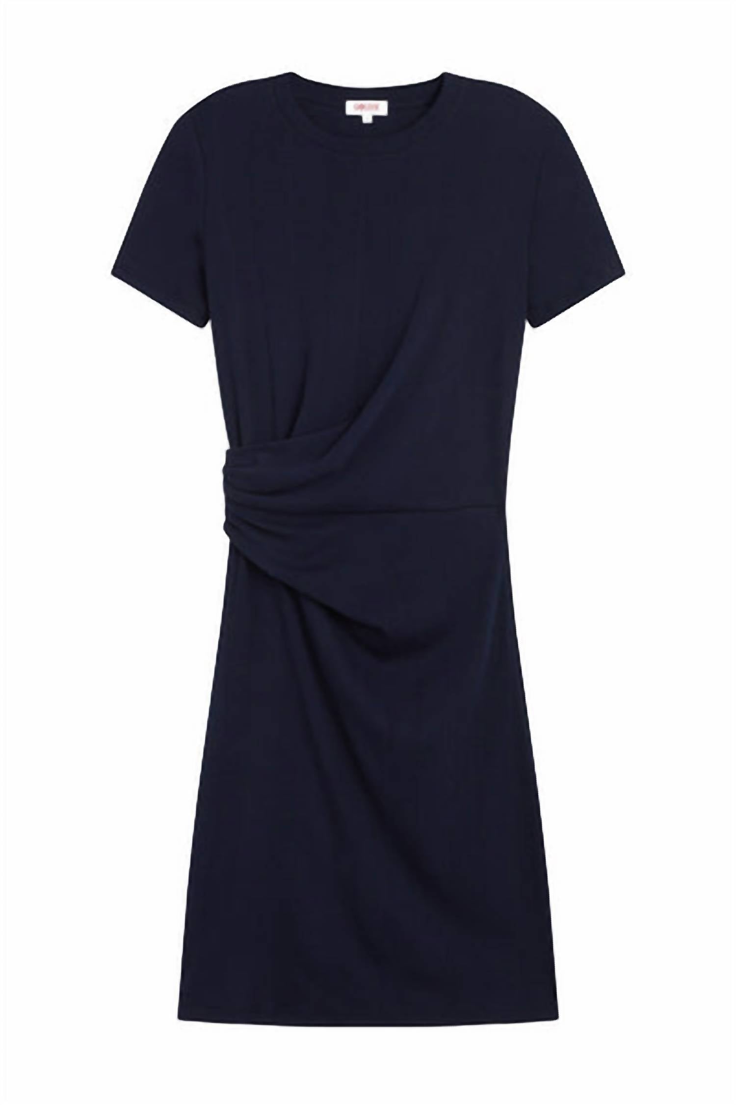Introducing the Mia Mini Dress by Goldie Tees, a sophisticated yet sexy addition to your wardrobe with its luxurious ribbed fabric. This sheath dress, crafted with short sleeves and a crewneck, flatters the waist with its gathered design. Made from 100% Peruvian pima cotton, it measures 34" in length and is a perfect choice for a minimalist Thanksgiving look. Country of origin: Peru. Closure: Pull on. Care: Machine wash.