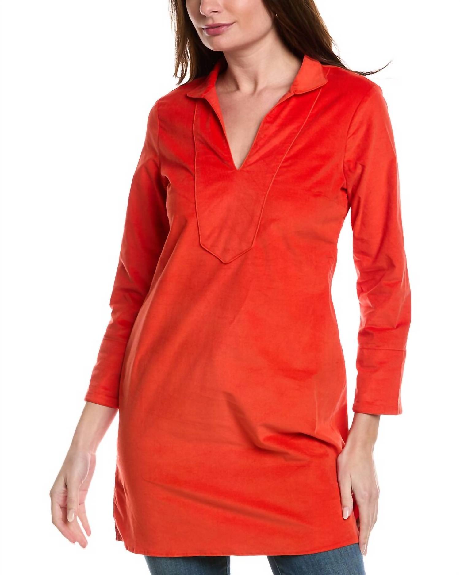 Elevate your holiday wardrobe with the Corduroy Classic Tunic Mini Dress by SAIL to SABLE. This women's shift dress showcases long sleeves and is crafted from a textured cotton blend, offering a rich red hue perfect for Thanksgiving gatherings. With a versatile length of 34 inches, a stylish stand-up collar, and convenient side slits, this piece ensures both elegance and ease of movement. Closure: Pull on. Care: Machine wash. Imported.