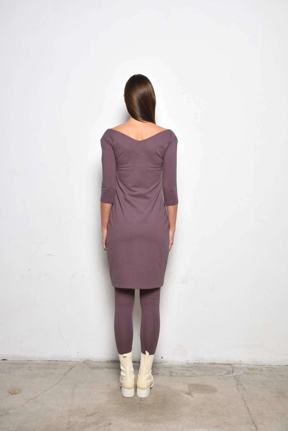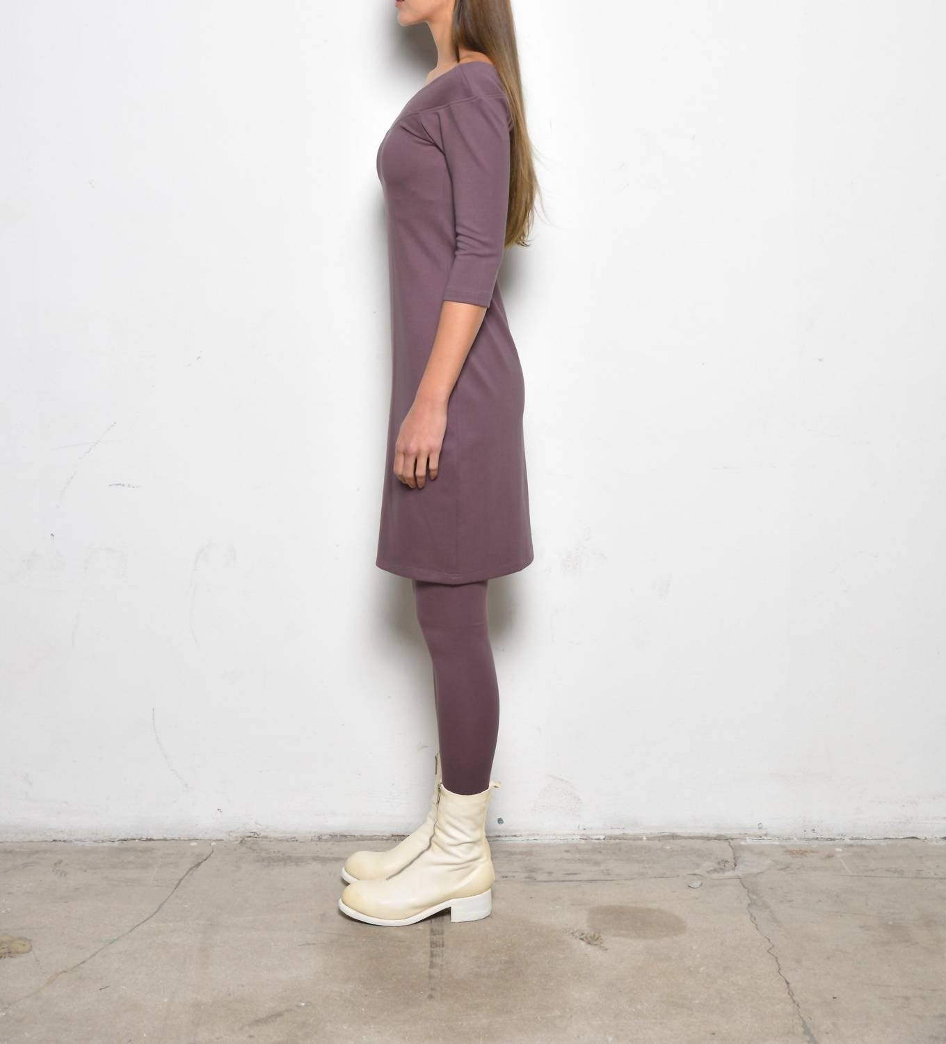 The kind of easy and flattering dress you'll be reaching for all season long. Discover the Women's Berlin Dress by Simply Mila, now available in a stunning grape hue. This off-shoulder, three-quarter sleeve dress perfectly contours your body with its stretch-infused jersey composition, combining Rayon, Nylon, and Spandex. Designed with a knee-length hem, this dress is made in the USA and offers a pull-on closure for effortless elegance. Care for this chic piece is easy—machine wash cold on a delicate cycle, inside out, and tumble dry low.