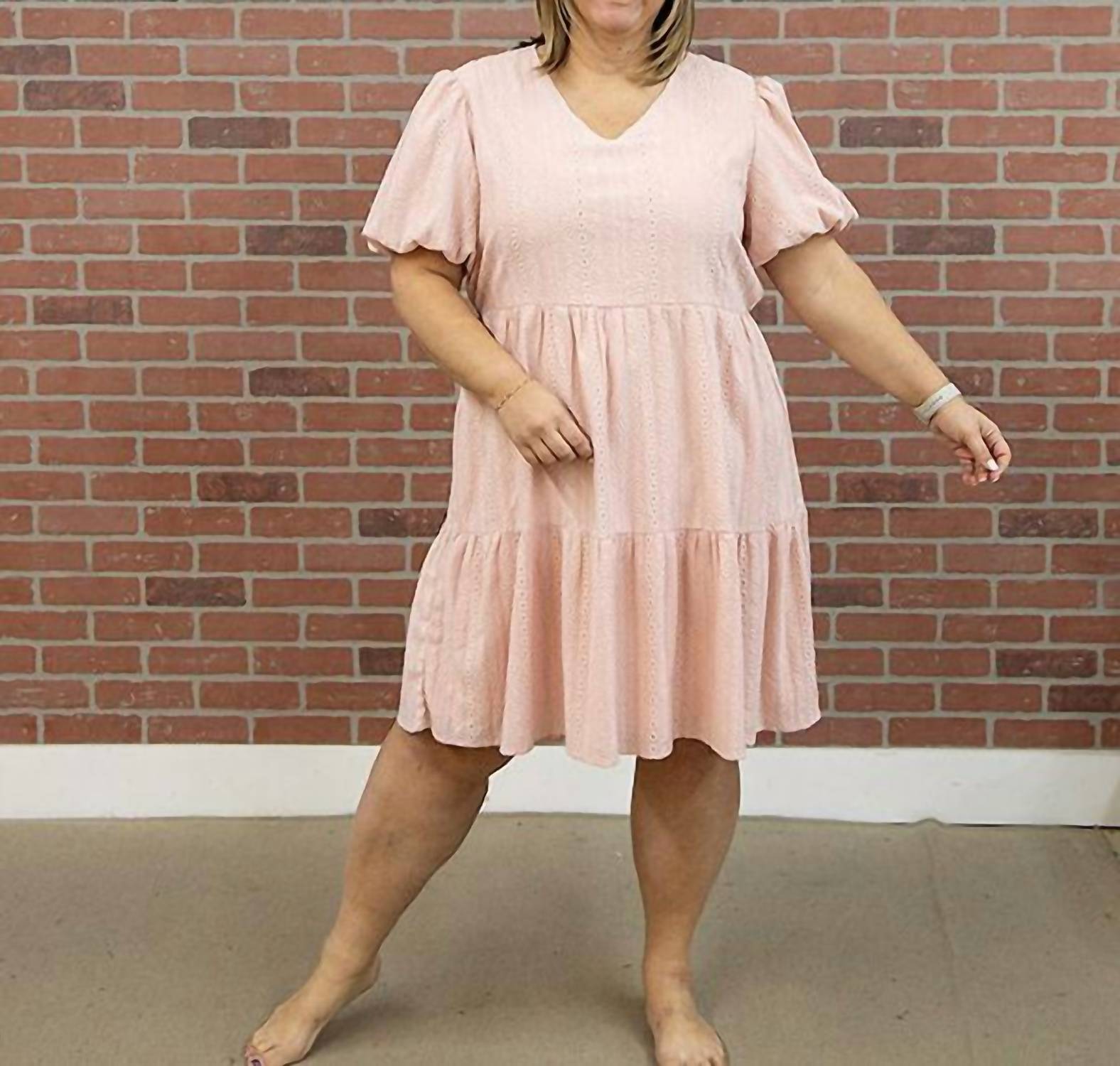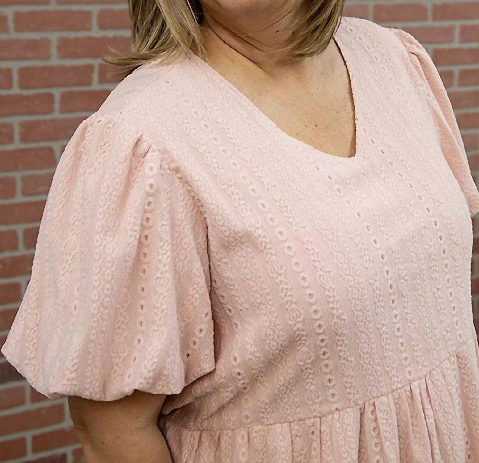Just add slides or mules and you are good to go. Introducing the Chelsea Midi Dress by Tea N Rose, a graceful addition to your spring wardrobe with its blush pink hue and elegant short puff sleeves. Crafted from 100% polyester, this solid-patterned dress features a flattering A-line silhouette enhanced with a tiered design and a sophisticated v-neck. Measuring at a length of 40 inches, it offers a pull-on closure for easy wear. For optimum care, hand wash cold, avoid bleaching, and hang or line dry. Fits true to size, with the model wearing a large at 5'5". Perfect for occasions like a baby shower or Mother's Day, this dress embodies a boho chic style that ensures you look and feel fabulous.