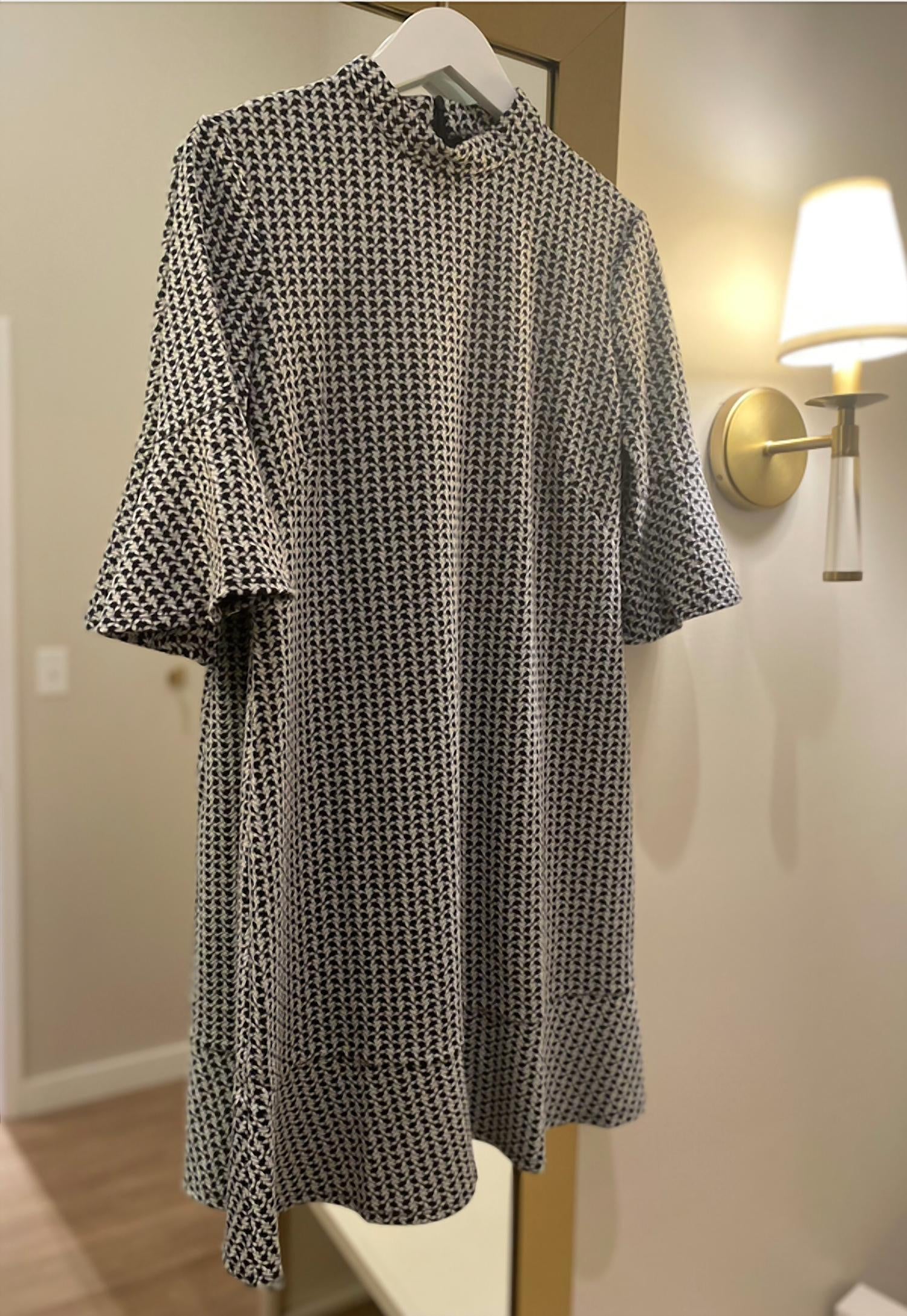 A short and breezy dress for those warmer days. Introducing the Women's Mindy Jacquard Mini Dress by Tyler Boe, a chic addition to your wardrobe for any holiday party. This stylish piece features three-quarter flared sleeves and a mock neckline for a slimming, elegant silhouette. Fabricated with a blend of 91% Polyester, 7% Rayon, and 2% Spandex, it measures 37" in length, offering a shift silhouette in a trendy Vintage style. Closure: Zip closure. Care: Machine wash cold, lay flat to dry, ensuring the turquoise floral pattern stays vibrant.