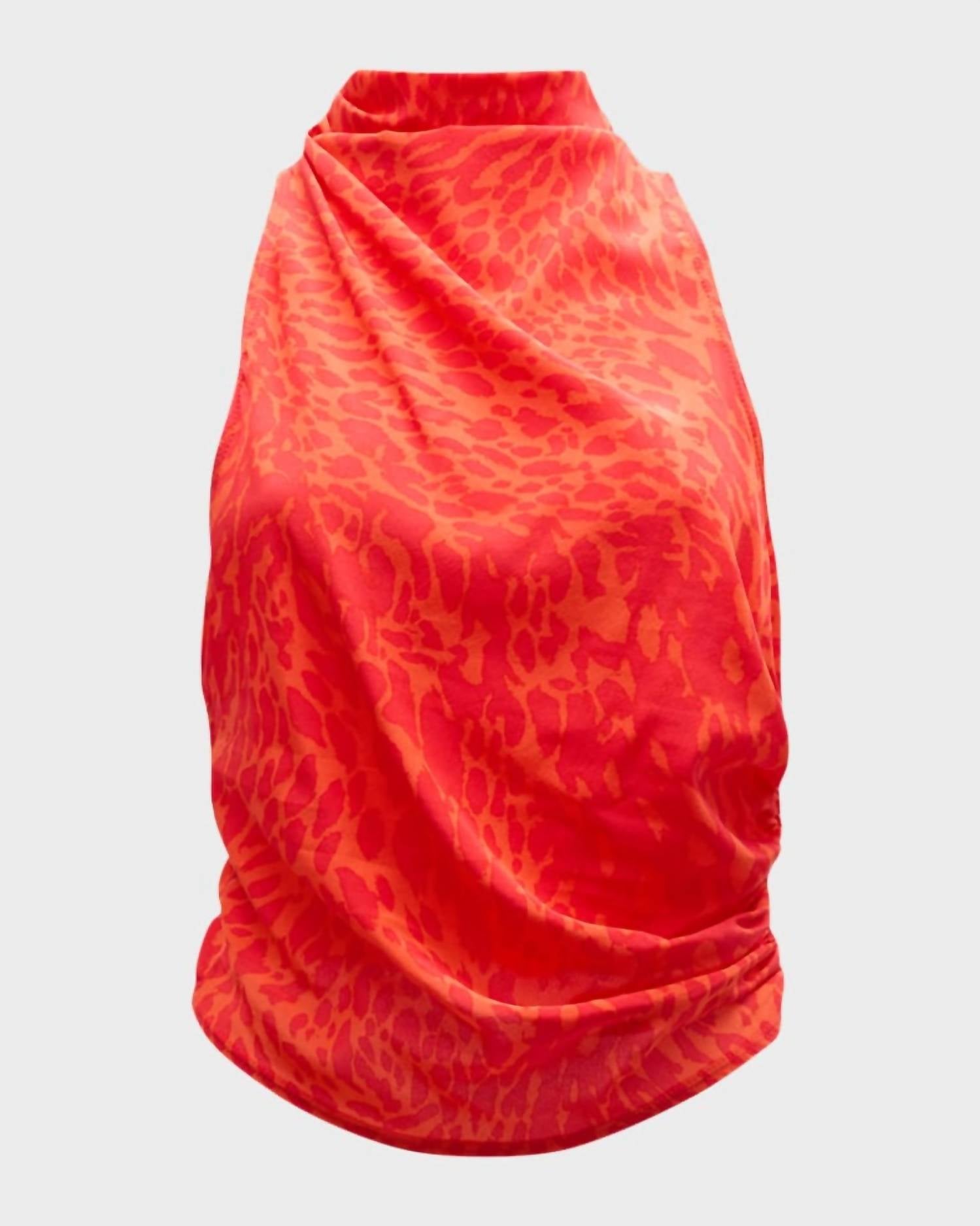 This classic tank top is perfect for layering and cute enough to wear on its own.Silk leopard-print top with side ruching. High neckline. Sleeveless. Draped silhouette. Hem sits at the hip. Back zip. Silk/elastane. Dry clean. Model is 5'10"/177cm.