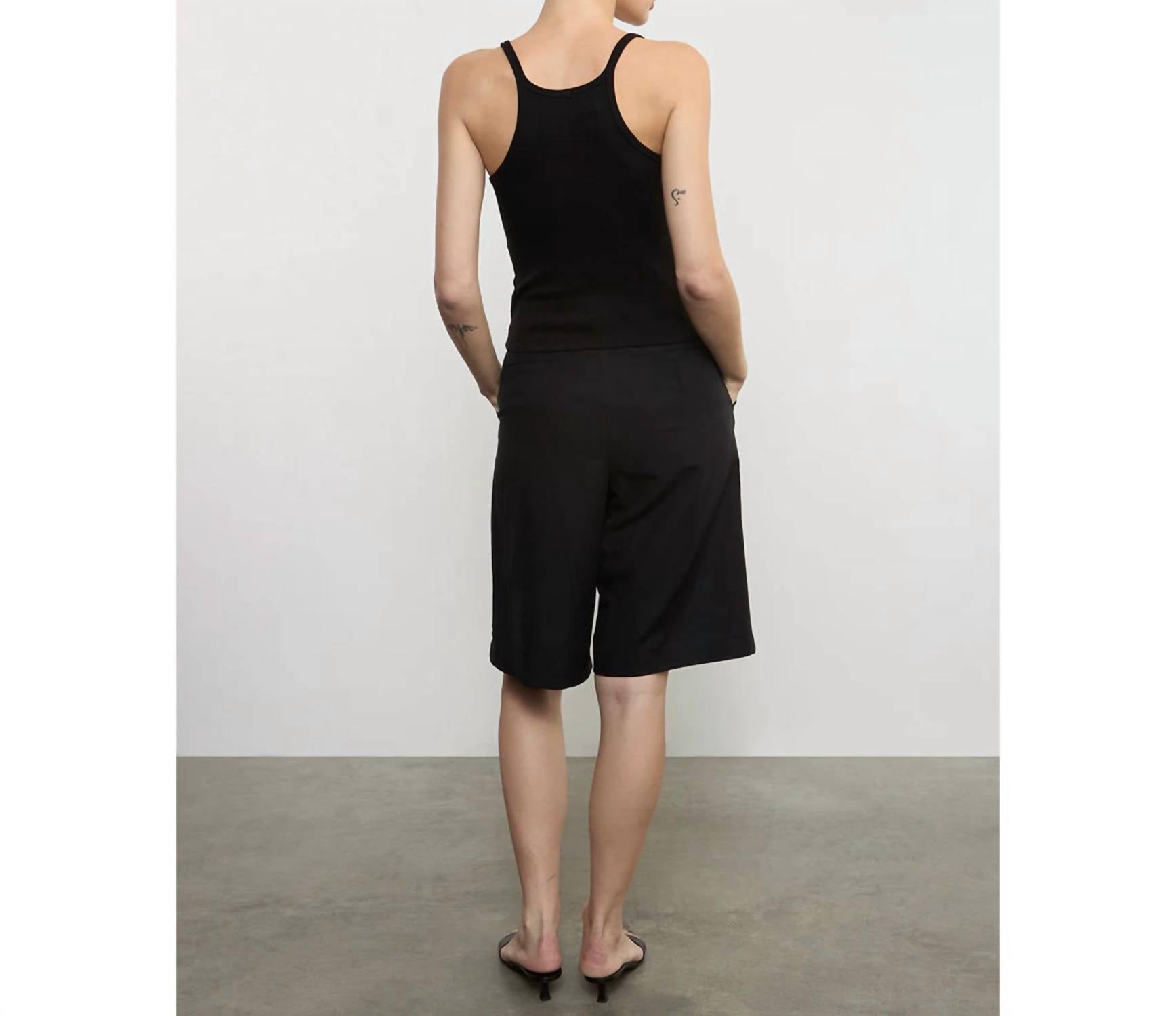 Discover the ultimate warm-weather essential with these stylish women's Bermuda shorts, skillfully crafted to provide a harmonious fusion of fashion and function. Discover the Twill Bermuda Short by Enza Costa, a modern take on the classic Bermuda silhouette with a comfortable above-the-knee length. Crafted for the perfect balance of style and comfort in 48% Tencel, 30% Linen, and 22% Cotton, these shorts feature functional pockets and a pull-on design. Made in the USA, they are perfect for warm weather wardrobes with their solid black finish. The Twill Bermuda is lined with 100% Cupro for added luxury.