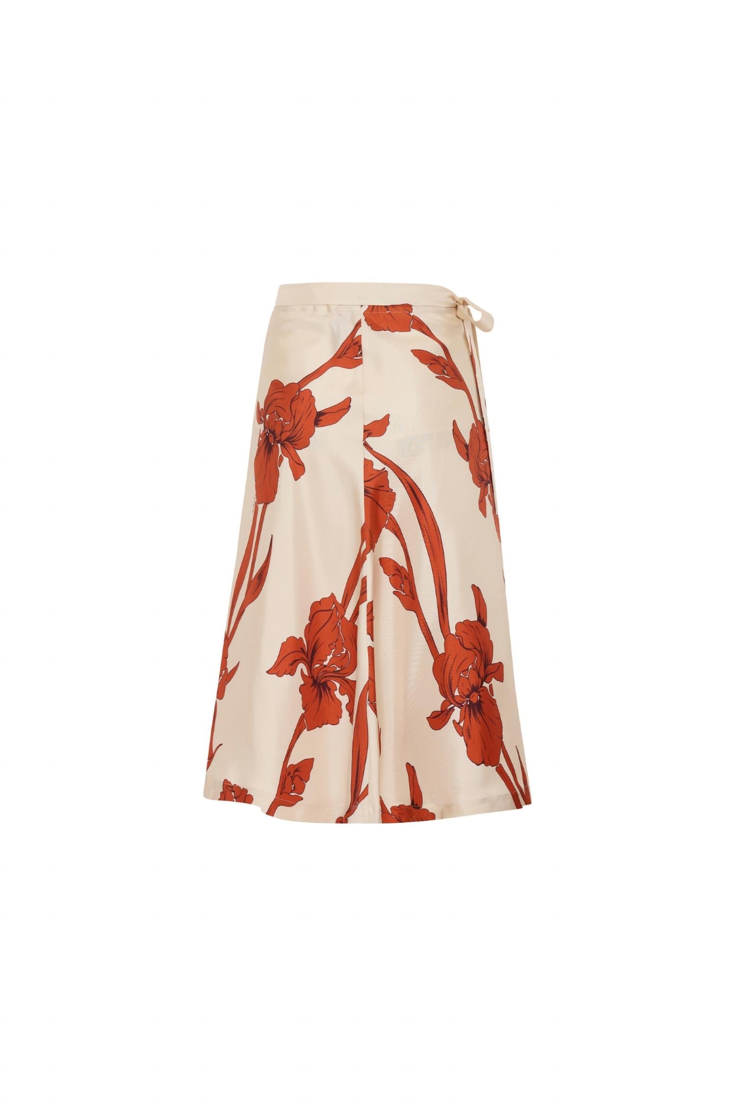 The Pareo Midi Skirt by La DOUBLEJ is an essential addition to any wardrobe, offering a boho chic vibe in a striking iris floral print. Made from 100% Italian silk, this a-line skirt wraps comfortably around you, perfect for vacations or summer outings. With its versatile nature, it seamlessly transitions from workwear to weekend casual by pairing it with various tops. Crafted in Italy, this piece emphasizes effortless sophistication without any fuss of closures or pockets.