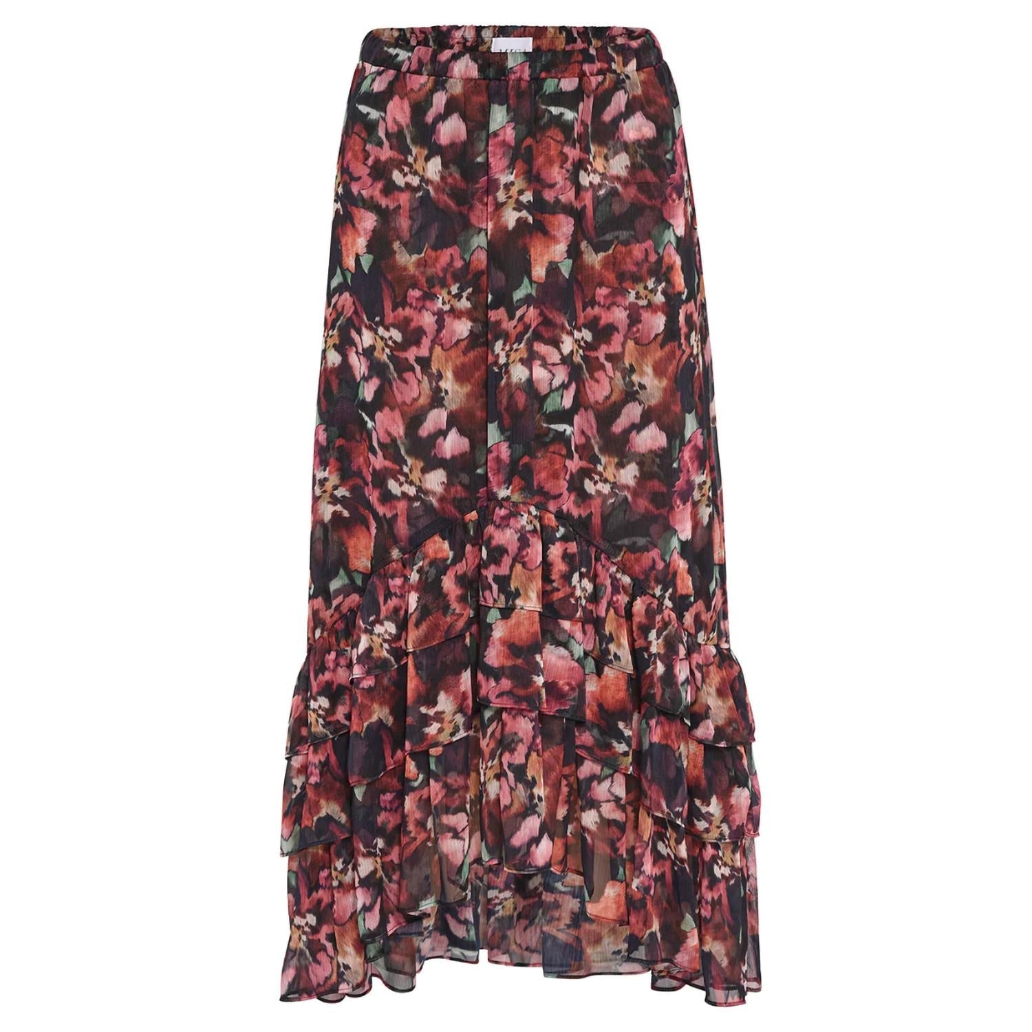 Flowy, comortable and stylish. This maxi skirt is a fan favorite. Misa Esti Skirt Poly Chiffon in Libra Fleur Chiffon Asymmetric Maxi Skirt Vibrant Painterly Floral Print Wide Ruffle-Trimmed Hem Elastic Waistband Double-Lined Slip Skirt True to Size Dry Clean Made In The U.S.A.