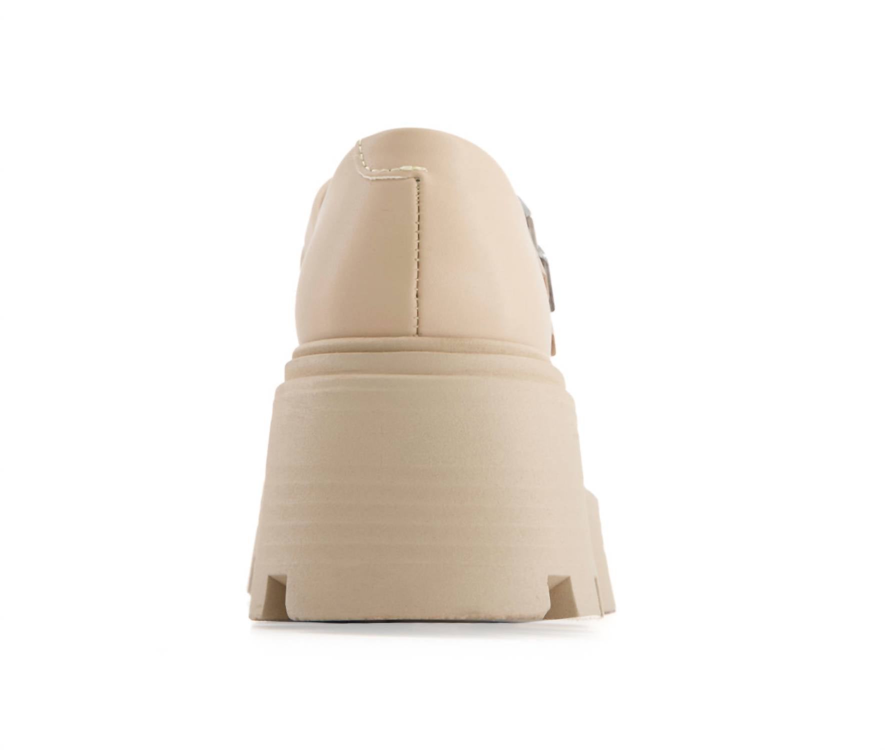 A preppy yet feminine take on the classic loafer. Elevate your wardrobe with the Andrea Women's Combat Penny Loafers, crafted in fashionable beige for a chic, modern look. These loafers feature a round toe and block heel, making them perfect for a dinner party. Their platform design, double strap with buckle, and anti-slip Combat style outsole provide both style and practicality. Ideal for spring, these loafers offer everyday comfort with a foam-padded Comfortech insole.