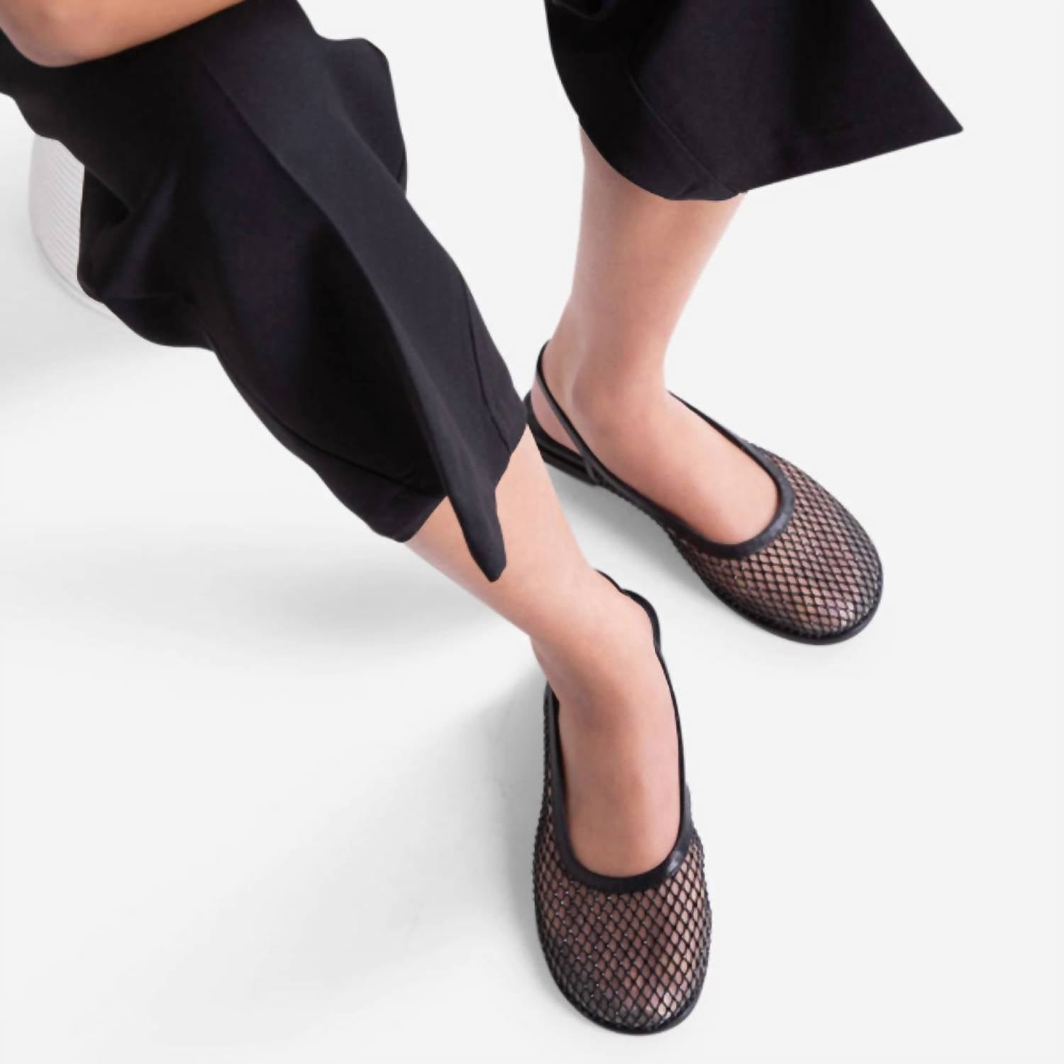 A preppy yet feminine take on the classic loafer. The Anna Slingback Sandal by Intentionally Blank redefines the classic ballet flat with a contemporary twist, crafted with a stylish leather and mesh upper. Featuring a sleek leather lining and a slingback strap with buckle closure, these flats ensure a snug and secure fit. The crystal-embellished mesh adds a touch of elegance, while the rounded toe and a modest 0.5-inch heel create a soft, feminine silhouette. Made in China, these sandals boast a memory foam footbed for added comfort, making them a versatile addition to any warm-weather wardrobe.