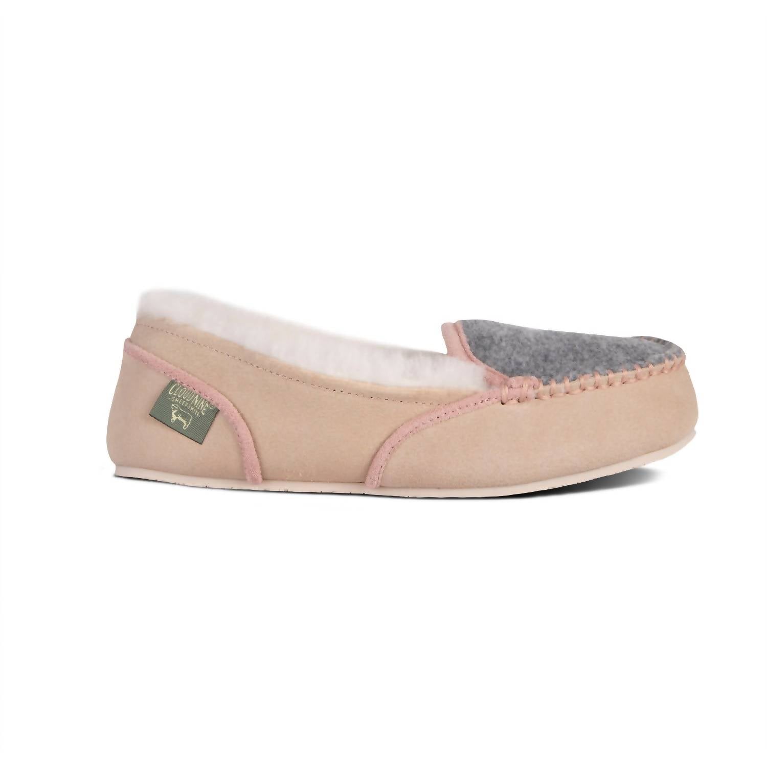 Comfortable, stylish and adorably cute. These boho chic moccasins are the perfect shoe to throw on for grocery runs, school pick-ups or weekend soccer games! Step into comfort with the Women's Savannah Moc by CLOUD NINE, elegantly crafted in a chic sand and grey palette. These moccasins feature a suede leather upper for a refined look, complemented by a 100% sheepskin lining with a removable insole for adaptable comfort. The TPR rubber sole ensures these shoes are versatile for both indoor and outdoor use.