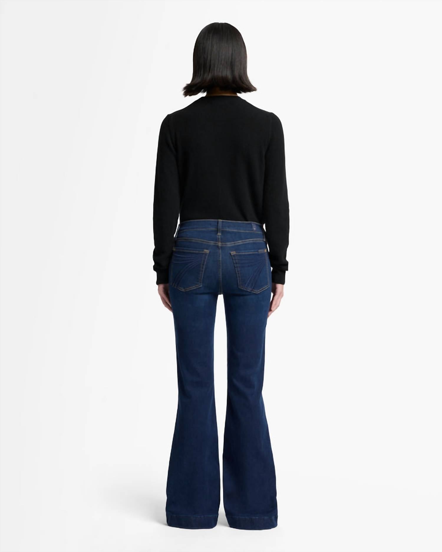 Elevate your wardrobe with the 7 For All Mankind Women's Medium Melrose Tailorless Dojo Trouser Leg Jeans, a perfect blend of comfort and style. Featuring a wide trouser leg and high-rise waist, these jeans offer a relaxed fit that flatters while providing excellent comfort. Crafted from a premium cotton blend, they feature a medium wash with contrast stitched embroidery on the back pockets and hand sanding details for added texture. Closure: Zip closure with button. Care instructions: Machine wash, tumble dry.