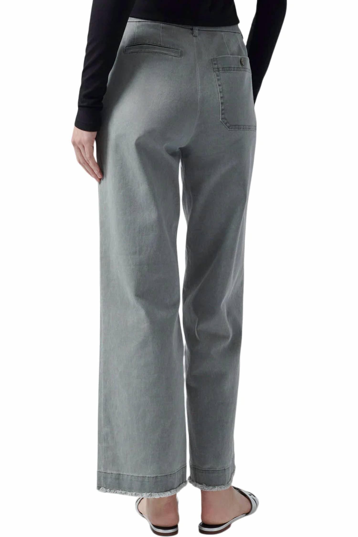 This straightleg pant is both stylish and comfortable. Did we mention the fit is perfection?Feature a relaxed straight leg that hits at the ankle with a frayed hem and a garment wash treatment with a subtle distressed appearance. This flattering mid-rise, done in a luxurious cotton with a touch of spandex for stretch, is finished with side slit pockets, button and zip fly closure and belt loops. Machine wash cold.
