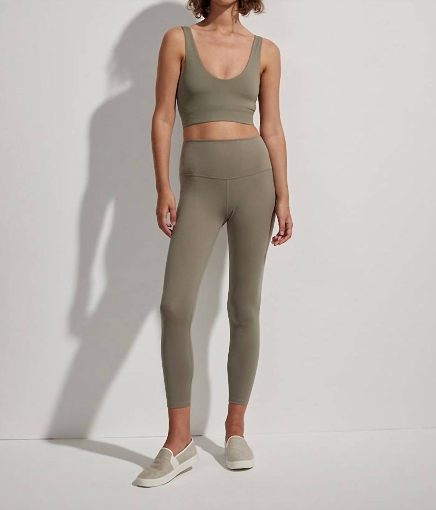 High-waisted leggings with a supportive high waistline and a 25" inseam in a 7/8th length. Made from Varley's signature buttery soft Always fabric using recycled fibers. 75% Recycled Polyester, 25% Elastane. Machine wash cool with like colors, do not bleach. Hang or lay flat to dry, do not bleach, do not tumble dry. Do not iron. Do not dry clean.