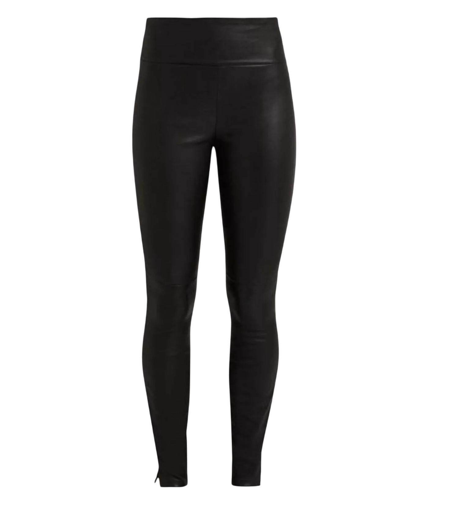 The legging you didn't know you needed and you won't want to take off. Elevate your workwear with the Corliss Leather Legging by Veronica Beard, perfectly crafted for a sleek silhouette. These black leggings feature a high-rise cut with an 11.5” rise and a 28” inseam, ideal for pairing with your favorite tops. Made from 100% lambskin with a luxurious stretch lamb leather material, these leggings offer a comfortable and form-fitting skinny leg style. Originating from China, they feature a chic pull-on closure and a side slit hemline for an added touch of elegance.