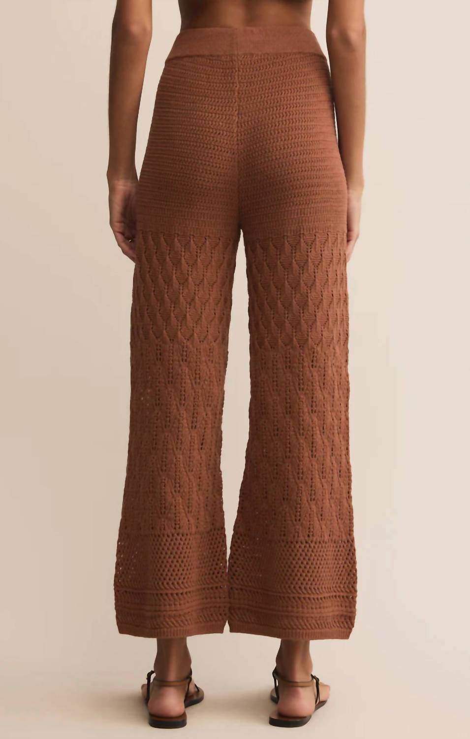 Upgrade your wardrobe with these cropped pants, designed to merge sophistication and wearability. The tailored fit ensures ultimate comfort during long days or nights out. Step into summer style with the Z Supply Adia Crochet Pant in Teakwood, offering a high-rise fit and wide-leg silhouette. With its textured cotton blend and open-knit crochet design, this pant provides both breathability and comfort. An easy pull-on closure makes it perfect for layering over swimwear or pairing with the matching Tay Tank. Composition: 77% Cotton, 23% Nylon. Care: Hand wash, lay flat to dry. Ideal for boho chic vacation vibes.