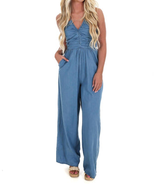 Bayeas - Annesa Denim Wide Legs Jumpsuit