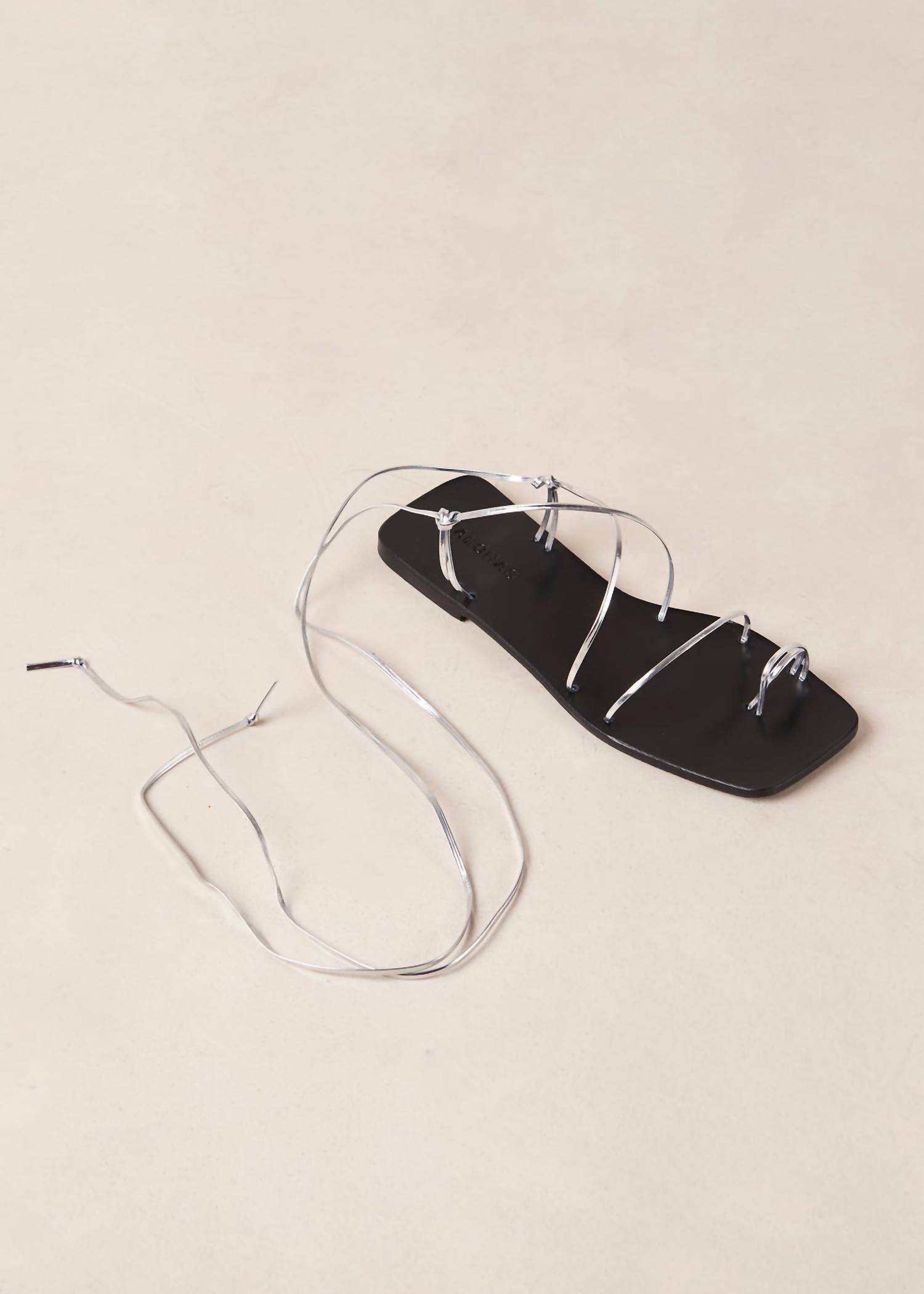 Introducing the Women's Bamboo Shimmer Leather Sandals by ALOHAS in a sparkling silver shade, designed for the ultimate summer vacation look. Crafted in Spain from sustainable leather, these sandals feature a squared toe with thin straps and a subtle toe ring, complemented by a flat heel with a height of 0.394 inches to keep you stylishly grounded. Ideal for maximalist trends, they provide all-day comfort, making them your go-to footwear for any vacation adventure.