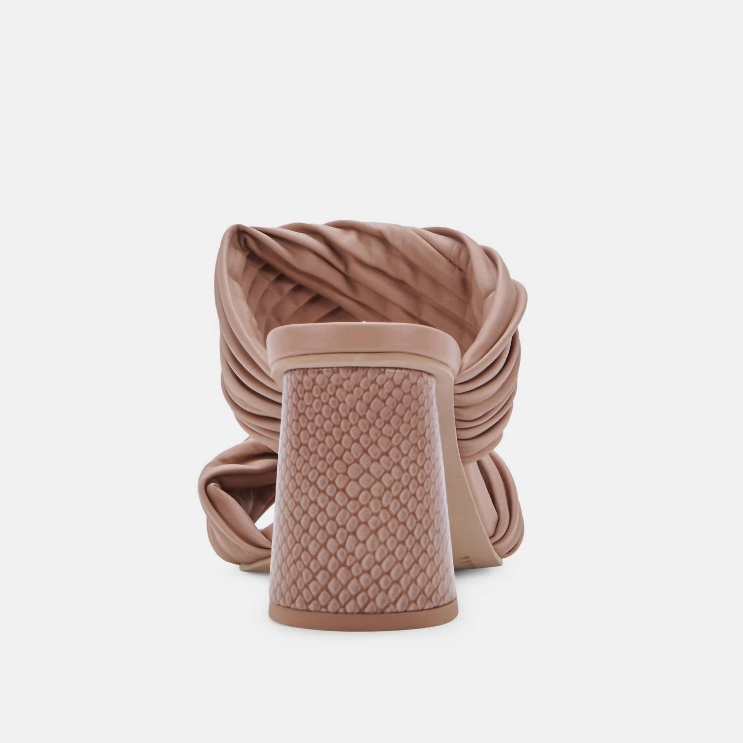 Flowy dresses, cropped pants, and even jumpsuits... this sandal works with them all! Step into effortless chic with the Paulina Heels by Dolce Vita, featuring a unique ruched effect and fold-over silhouette. Crafted with a synthetic upper and eco-conscious recycled synthetic outsole, these sandals boast an open toe design and a comfortable 2.8" block heel. The water-based leather alternative sock adds an eco-friendly touch to this nude pair. Imported and available in sizes 6 to 10, these heels fit true to size and are perfect for every season's style needs.