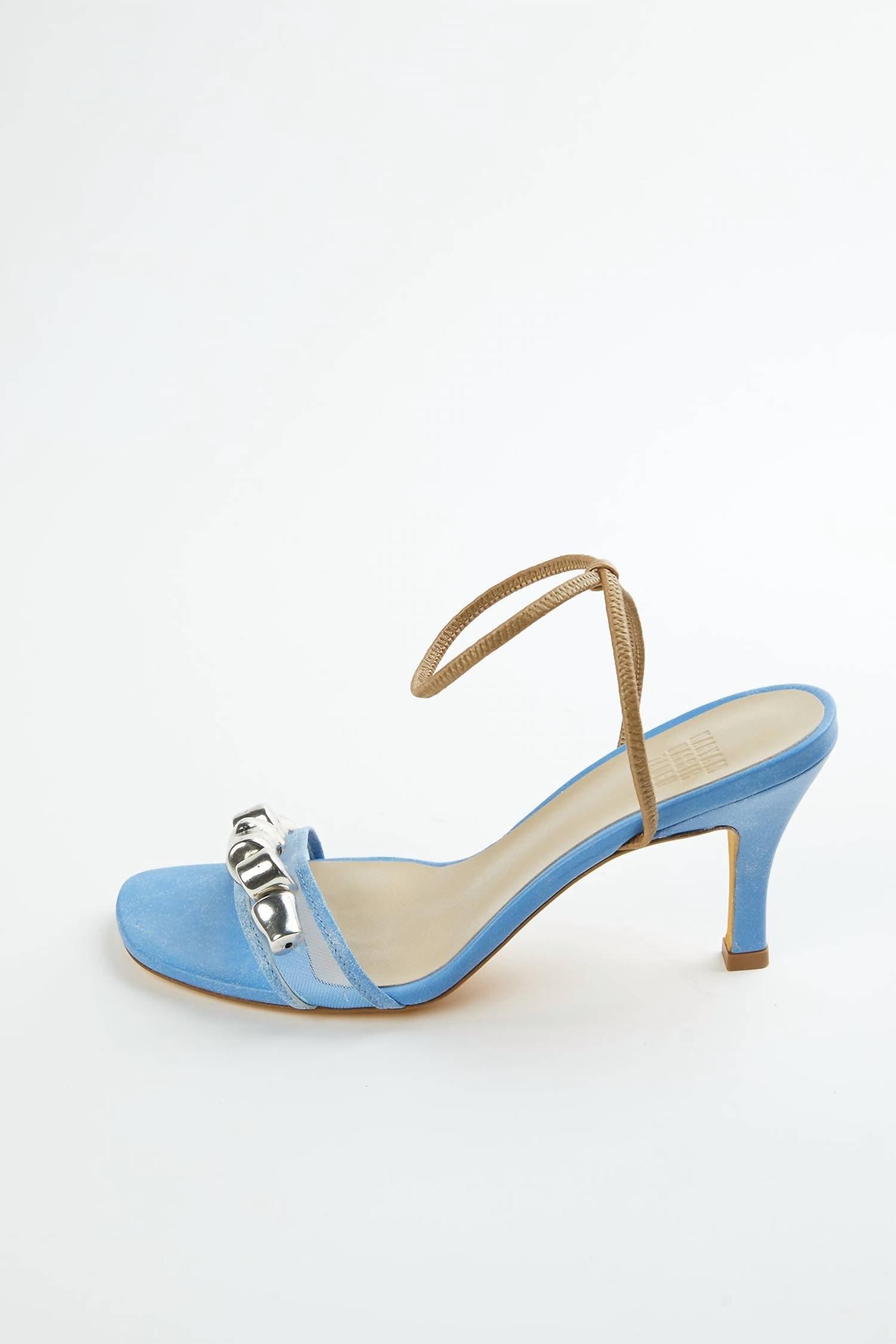 Classicly cute and all-day-wearable. We love this sandal.From yellow leather, the style has a mesh banded toe lined with silver studs and a contrasting, slim black ankle strap. Wear yours with midi dresses and cropped pants. . Italian Sizing. Heel Style: Kitten. Heel Height: High (3-3.9 in). Features: Ankle Strap.
