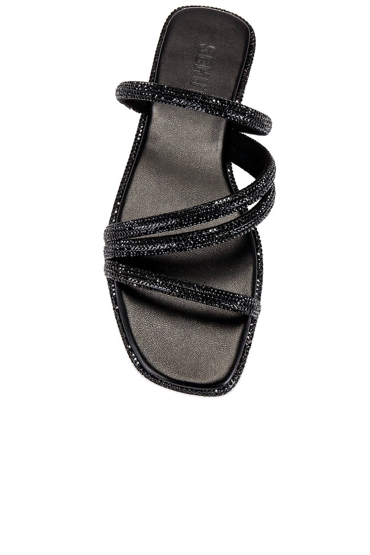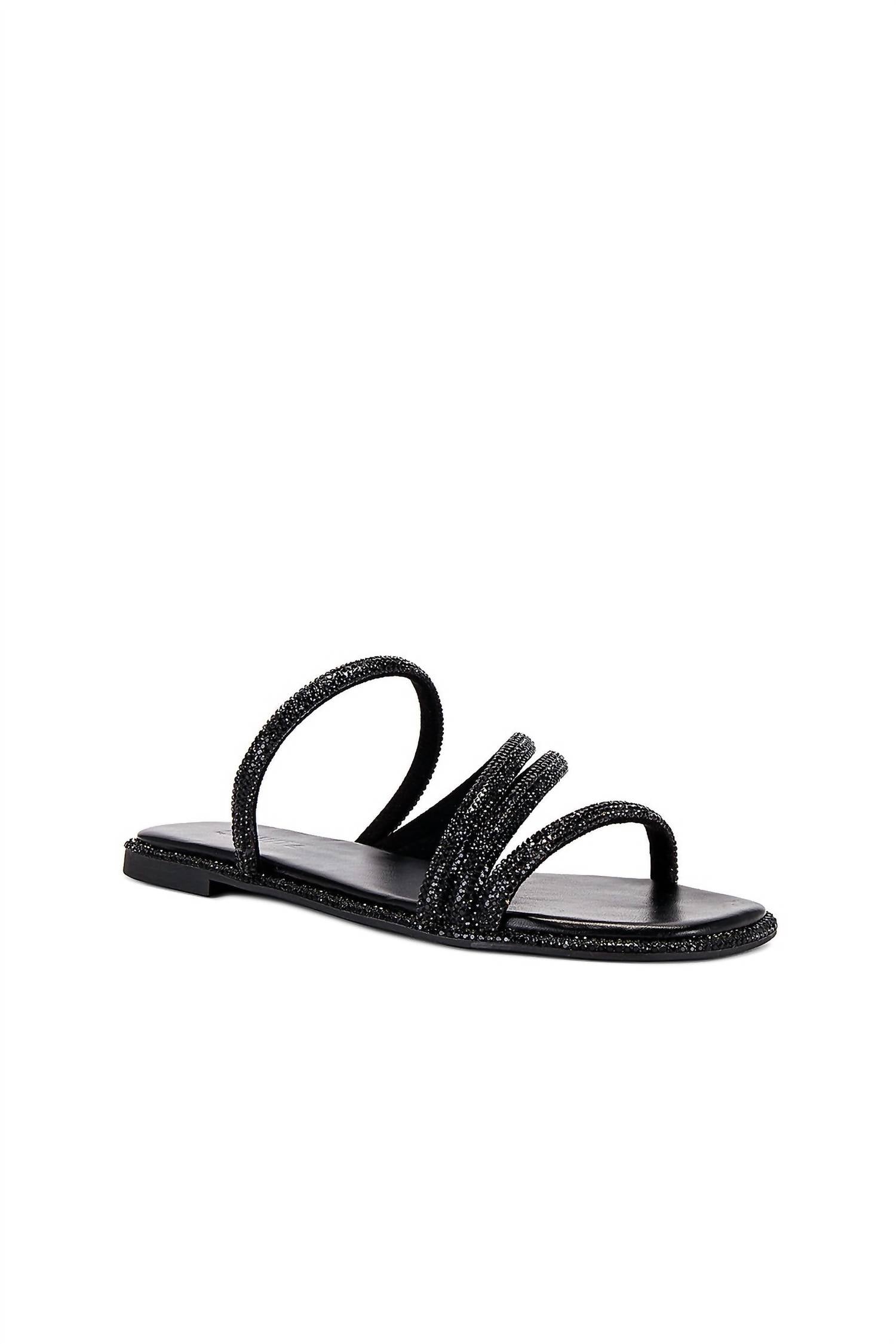 Classicly cute and all-day-wearable. We love this sandal.Crystal embellished upper with rubber sole. Slip-on styling. Leather footbed with textile lining. Square toe. Strappy design. Made in Brazil.