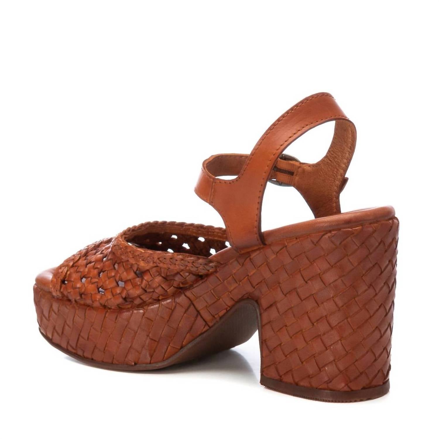 Classicly cute and all-day-wearable. We love this sandal. Introducing the Carmela Leather Heel Sandals by Xti, expertly crafted for both comfort and style. Made from the Genuine Leather Collection, these women's sandals boast a chic camel hue perfect for any occasion. The open-toe design and chunky high heel, standing at 3.94 inches, effortlessly enhance your look. Ideal for work or play, these sandals are a must-have in your wardrobe.