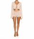 Experience boho chic style with the Bananhot Mina Knitted Shorts, ideal for a beach day. These high-waisted shorts feature a pull-on closure with a delicate crochet-style textured pattern in pink stripes. Crafted from 83% polyester and 17% elastane, they promise flexibility and comfort. Care instructions include hand washing and line drying to keep them in perfect condition. Model wears a size XS.