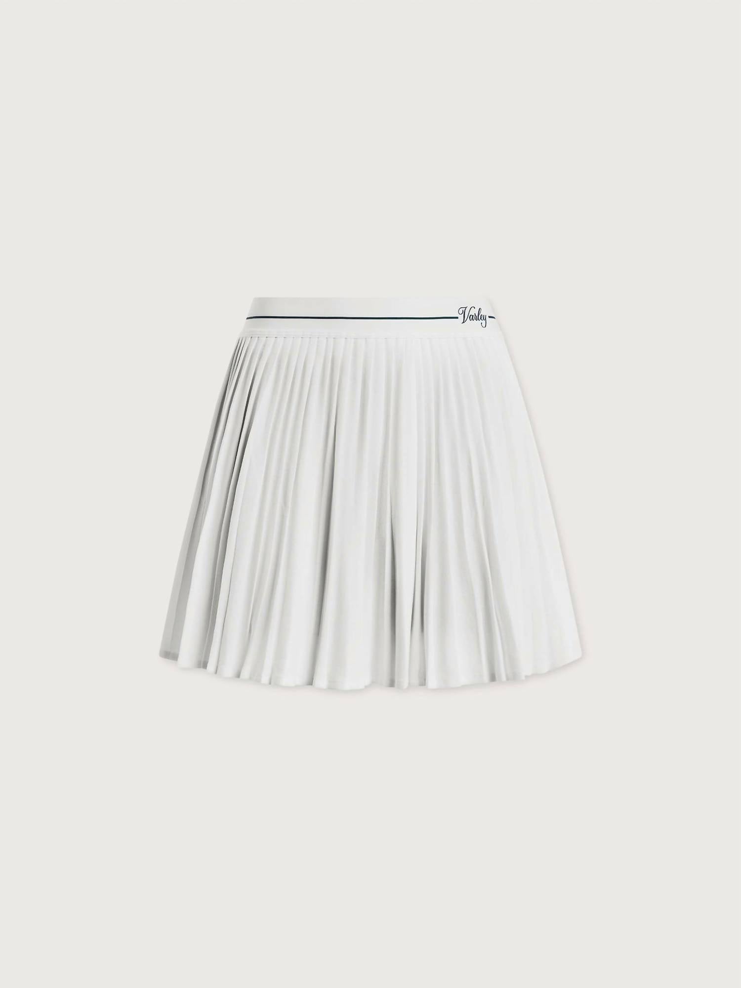 Discover the Clemency Skort by VARLEY, a perfect fusion of style and functionality in crisp white. This A-line skort is crafted from recycled material, ensuring a lightweight, comfortable wear with a 13.5" length. Designed with a pull-on closure, it features an inner short equipped with both a ball pocket and a regular pocket for convenience. Care Instructions: Machine wash and line dry.