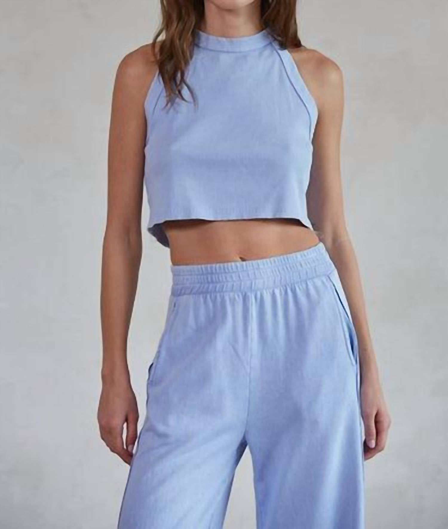 Fit, fabric and functionality. This tank top checks all the boxes. Introducing the By Together High Neck Tank Top in a chic periwinkle shade, perfect for elevating your wardrobe. This sleeveless tank top offers a flattering fit with its elegant halter neckline and pull-on closure. Crafted from lightweight cotton, it is designed for comfort and style, making it ideal for vacation or any spring occasion. Embrace minimalist fashion with this versatile, solid-patterned piece that’s sure to become a staple in your collection.