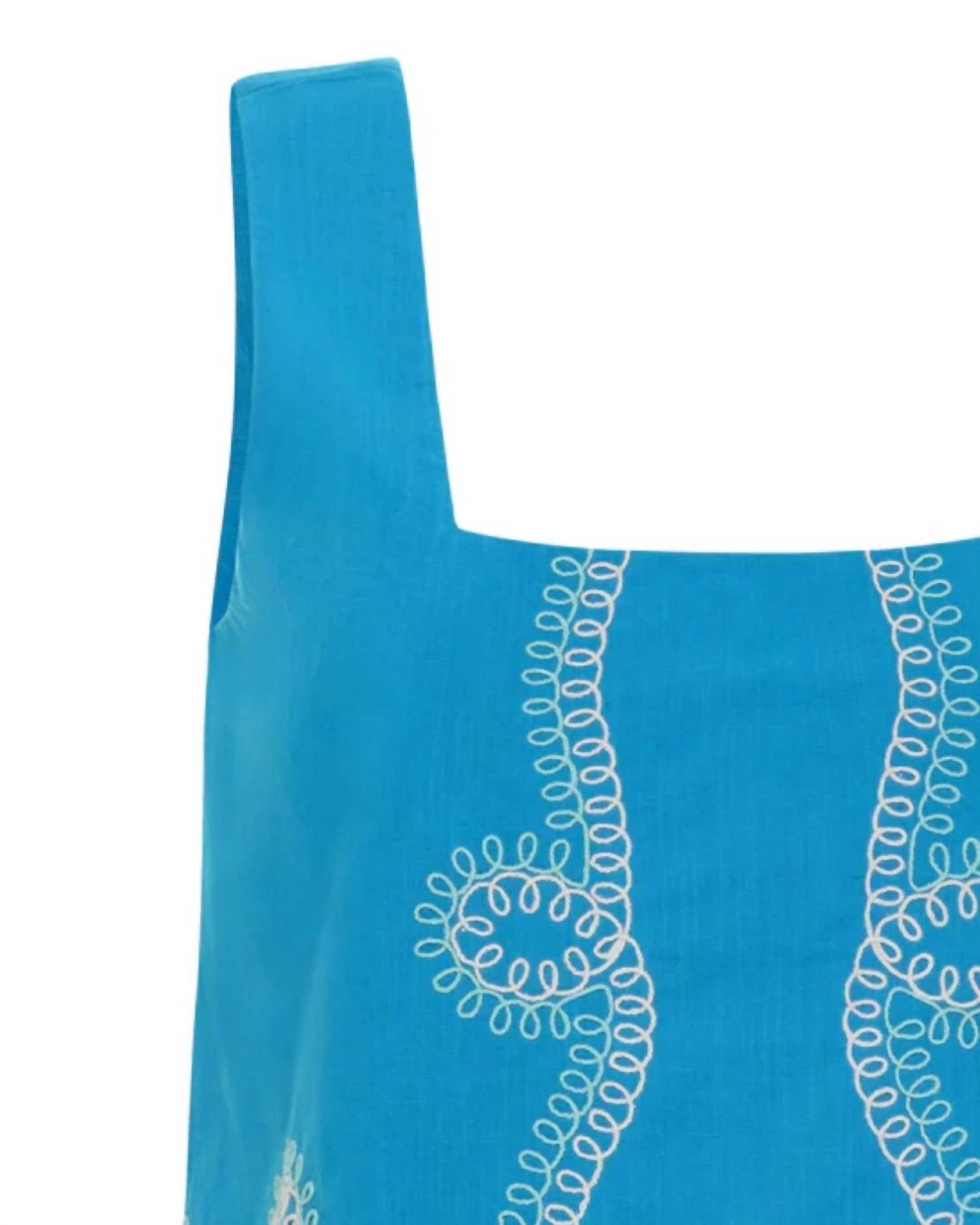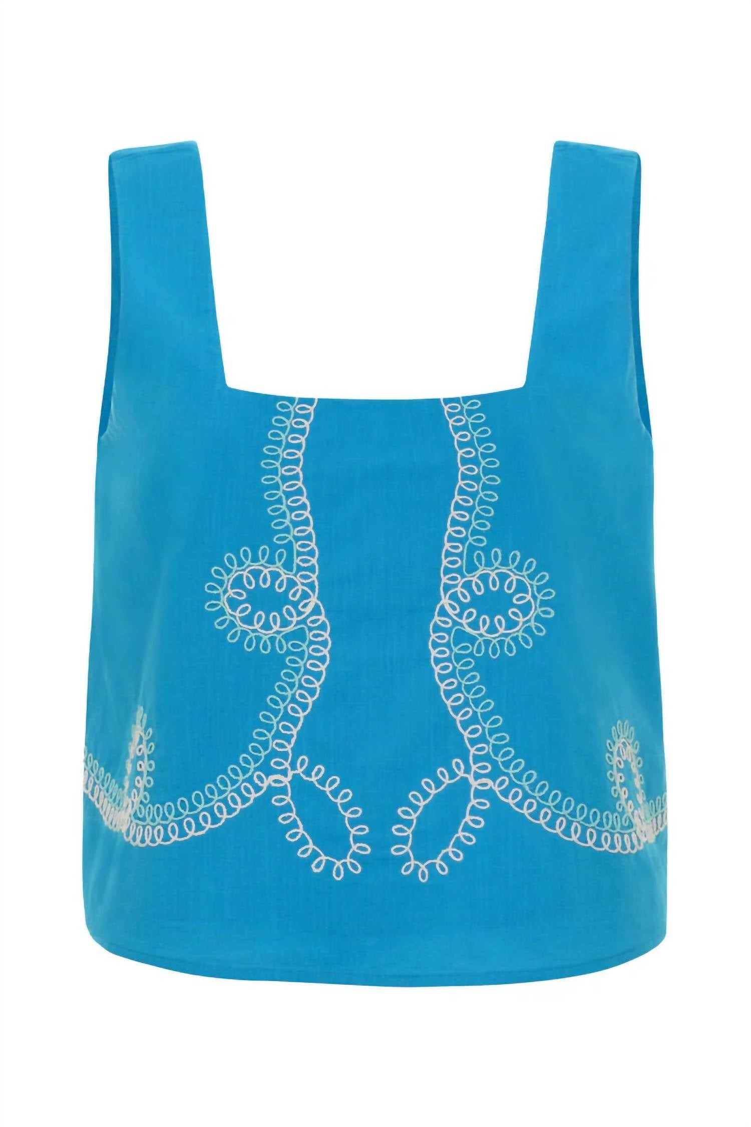 Introducing the Women's Blake Top by Anna Cate, a stunning sleeveless piece that combines elegance and style in a Blue Swirl pattern. The square neck enhances its sleek and sophisticated look, making it an ideal choice for summer vacations or Thanksgiving gatherings. Originating as a crop top, this design follows the Maximalist trend, ensuring you make a statement wherever you go.