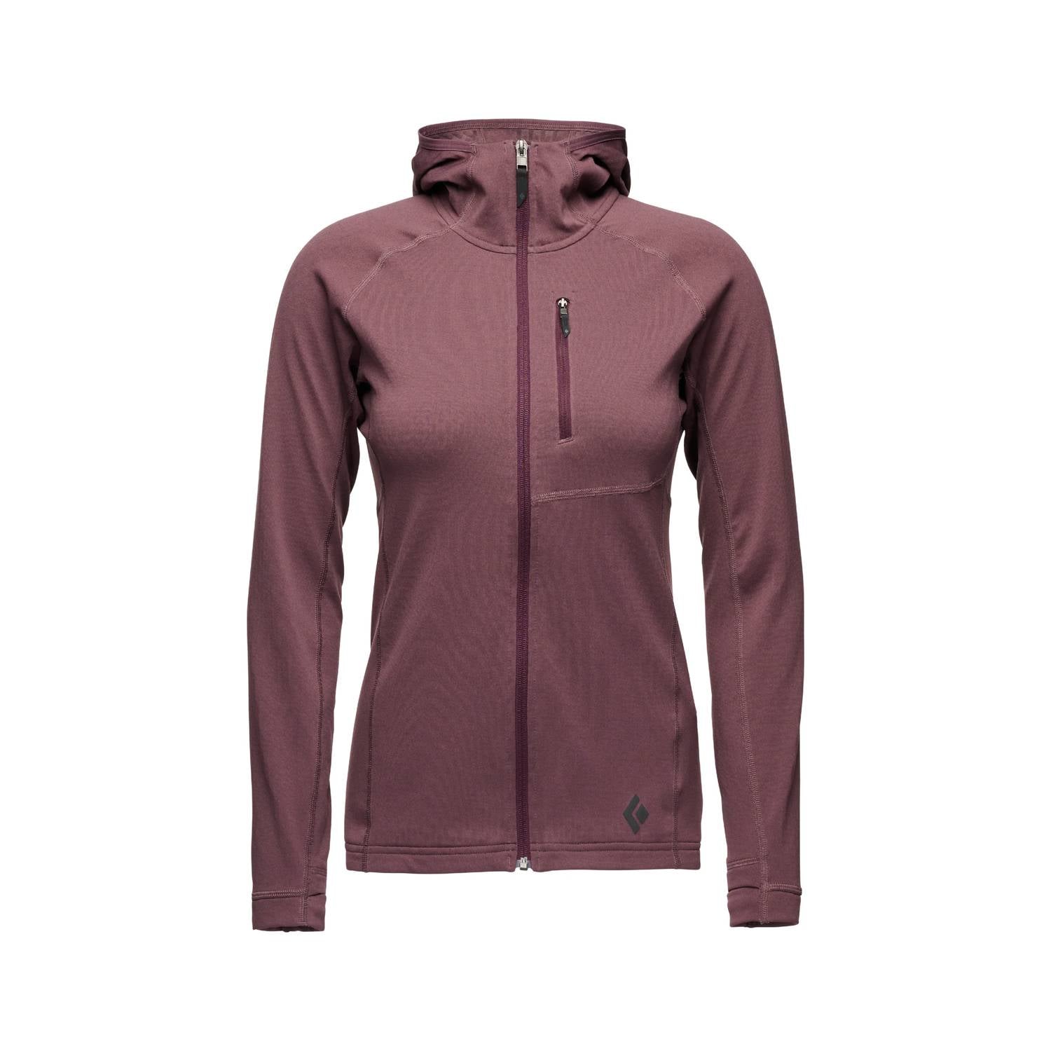 Cooler temps call for layering and we love this adorable sweatshirt for all the obvious reasons. Introducing the Coefficient Hoody by Black Diamond, a must-have for women who love winter fitness and athleisure fashion. Designed with long sleeves and a hooded neckline, this hoody is crafted from Polartec Power Grid Fleece, combining 51% Polyester, 36% Nylon, and 13% Elastane for optimal warmth and breathability. It features a convenient zip closure and a zip chest pocket for practicality. Made in El Salvador, this solid color fig hoody is easy to care for with machine wash and lay flat to dry instructions. The lightweight cuffs with thumb loops and under-the-helmet hood make it perfect for ski tours and alpine ascents.