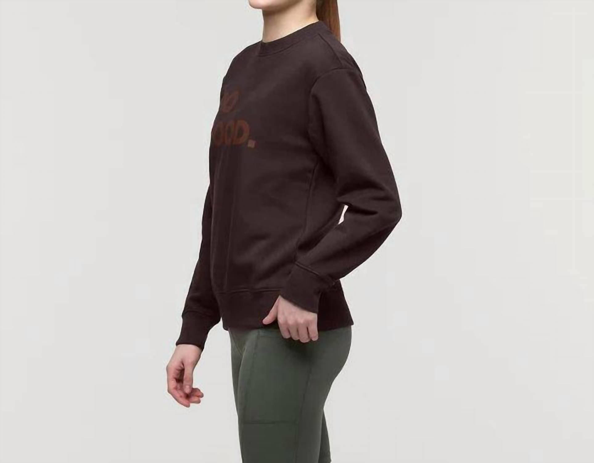 Cooler temps call for layering and we love this adorable sweatshirt for all the obvious reasons. Introducing the Do Good Crew Sweatshirt by Cotopaxi, a sustainable choice crafted in coffee color perfect for eco-conscious fashion. This women’s sweatshirt is made from 76.5% organic cotton and 23.5% recycled polyester with contrast retro piping at the shoulder seam for a classic fit. Featuring long sleeves and a ribbed cuff and hem, it offers a trendy streetwear look suitable for fall vacations and Thanksgiving occasions. Closure: Pull on. Care: Machine wash and tumble dry.