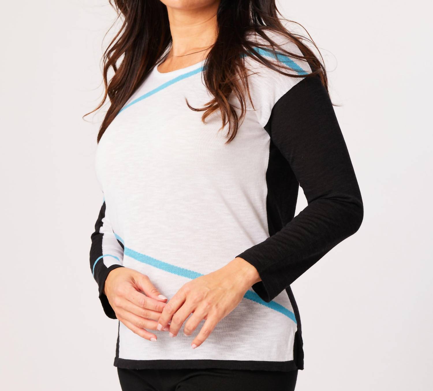 Great fit, cute design, soft fabric. You'll love everything about this long sleeve tee. Elevate your minimalist wardrobe with the Abstract Scoop Top by French Kyss, embracing a chic turquoise and white patterned design. This women's long sleeve tee features a stylish scoop neckline and hits at the hip for a flattering silhouette. Crafted from a cotton/acrylic blend and imported, it features a convenient pull-on closure for effortless wear. To maintain its quality, delicately hand wash or opt for dry cleaning.