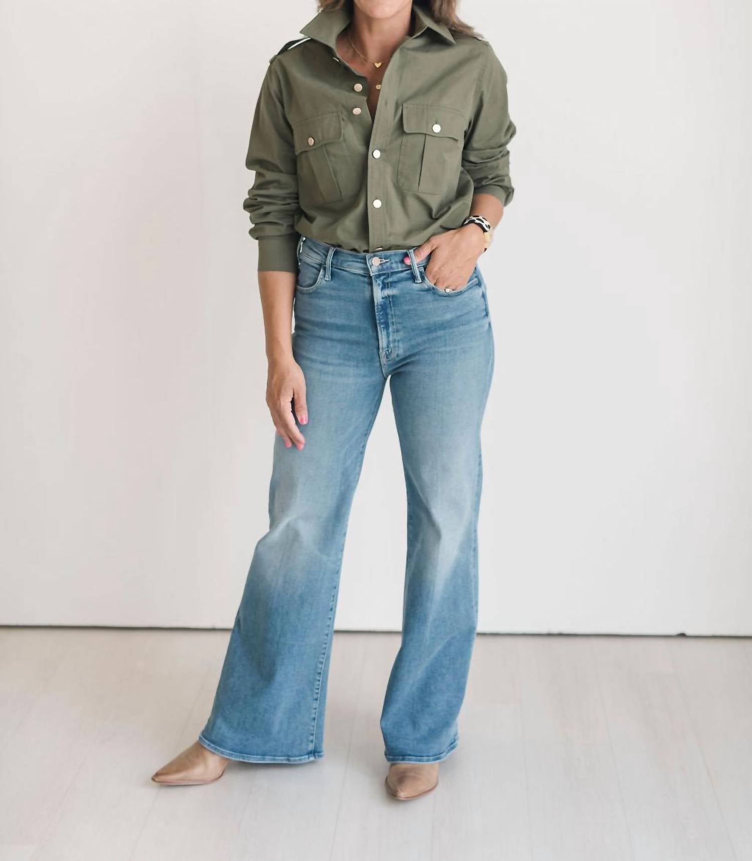 This button down shirt is comfortable yet polished. The Goldie Long Sleeve Shirt by Heidi Houston is an elegant choice for any dinner party. Crafted from 100% cotton, this solid olive shirt features short sleeves and a classic collar, ensuring both comfort and style. With a button closure and a slimmer fit, it offers a polished silhouette, perfect for spring occasions. Care instructions include washing delicate inside out and hanging to dry or opting for dry cleaning.