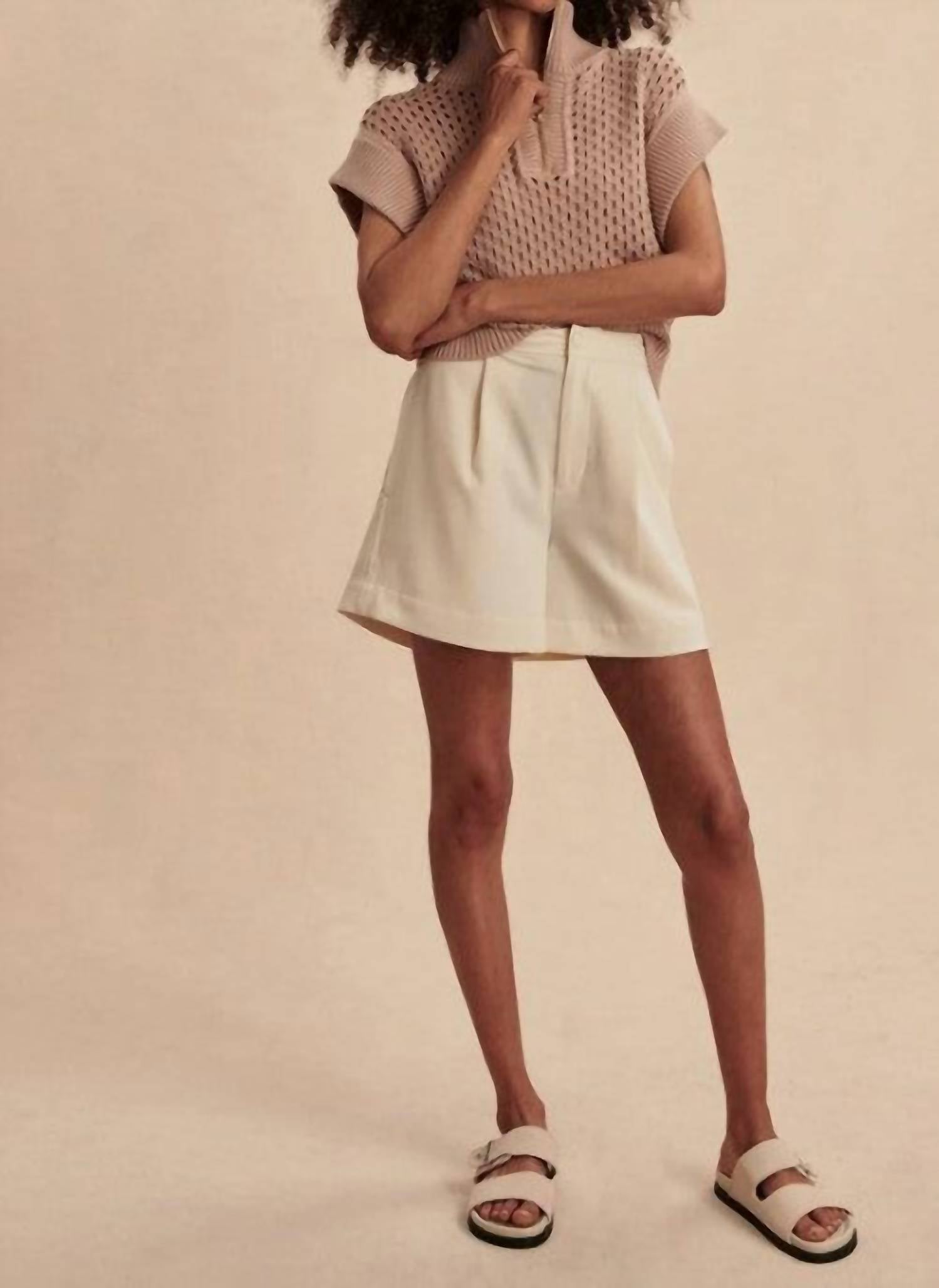 A versatile blouse that works from desk to dinner! Discover the Gaines Half Zip Knit Top by Varley, a minimalist piece designed in light taupe for a chic spring look. This oversized top features cap sleeves and a half zip closure, crafted from 100% cotton in the line's signature Pineapple Knit. The garment is designed for an oversized fit with a front length of 19.9", making it perfect for vacation styling. Care instructions include machine wash for easy maintenance.