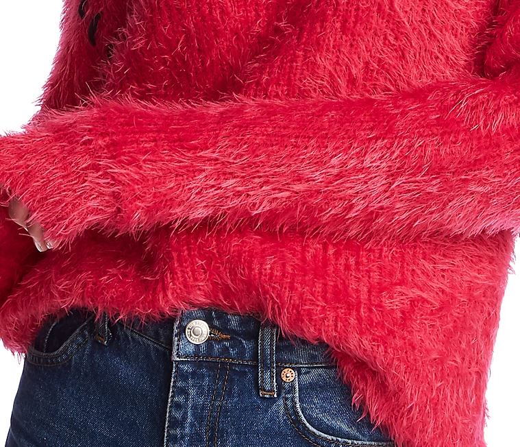 1.STATE Women's Eyelash Fringe Mockneck Sweater Pink