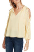 1.STATE Women's Ruffled Cold Shoulder Top Yellow Size S