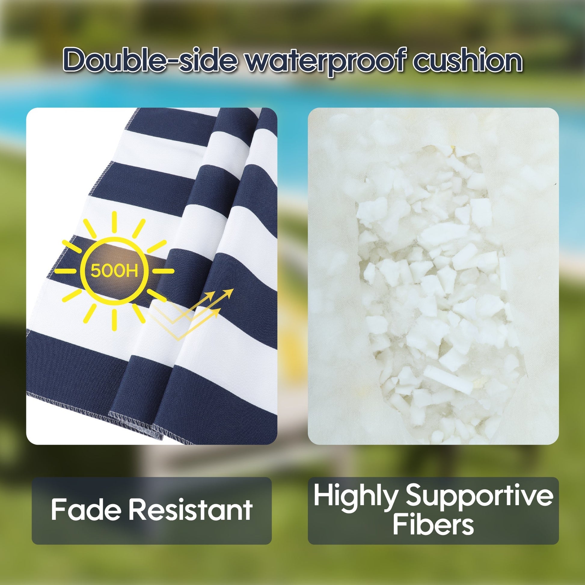 - Durable outdoor polyester fabric that is waterproof, sun-resistant, and fade-resistant