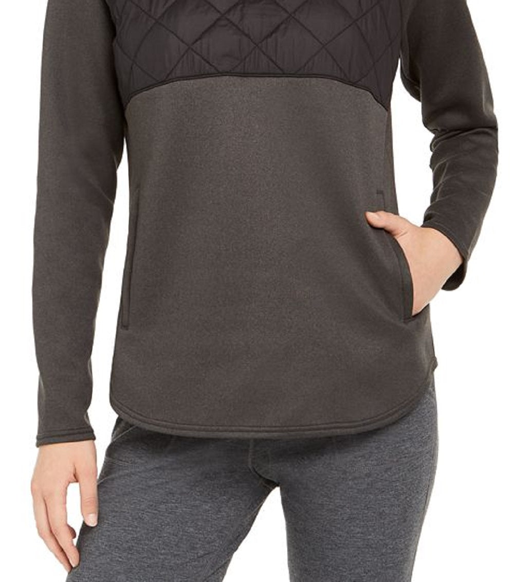 32 Degrees Women's Quilted Mockneck Pullover Grey Size Small