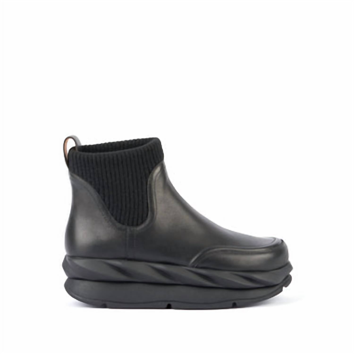 Say hello to the perfect, most versatile boot. The ankle height makes this style easily transition from day to night. Wear them with your favorite skinny jeans and tee for a more laid back look, or pair them with your favorite mini dress and jacket for a night out on the town. Step into style with the Women's Mellow Flow Chelsea Boot by 4CCCCEES, a sleek and versatile addition to any wardrobe. Crafted from high-quality leather with a classic round toe design, these black ankle boots offer both comfort and sophistication. Ideal for adult women seeking a timeless look, these boots effortlessly complement any outfit. Elevate your fashion game with this elegant and durable footwear option.