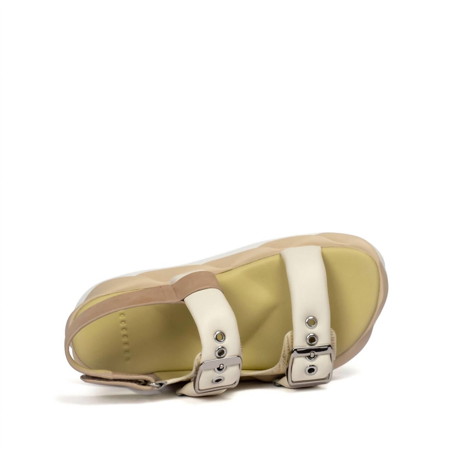 Indulge in the sophisticated design of the Women's Mellow Vita Sandals by 4CCCCEES, a contemporary footwear staple in cream. Crafted with fully adjustable padded tube straps, the sandals offer a playful twist with colored cow leather and a unique ripple design inspired by natural structures. The heel stands at a comfortable 55mm, with an upper made of luxurious cow and sheep leather and a lining of sheep leather for added comfort. Featuring a low-density PU midsole and an EVA foam outsole, these open-toe sandals promise excellent shock absorption and durability, ideal for effortless summer wear.