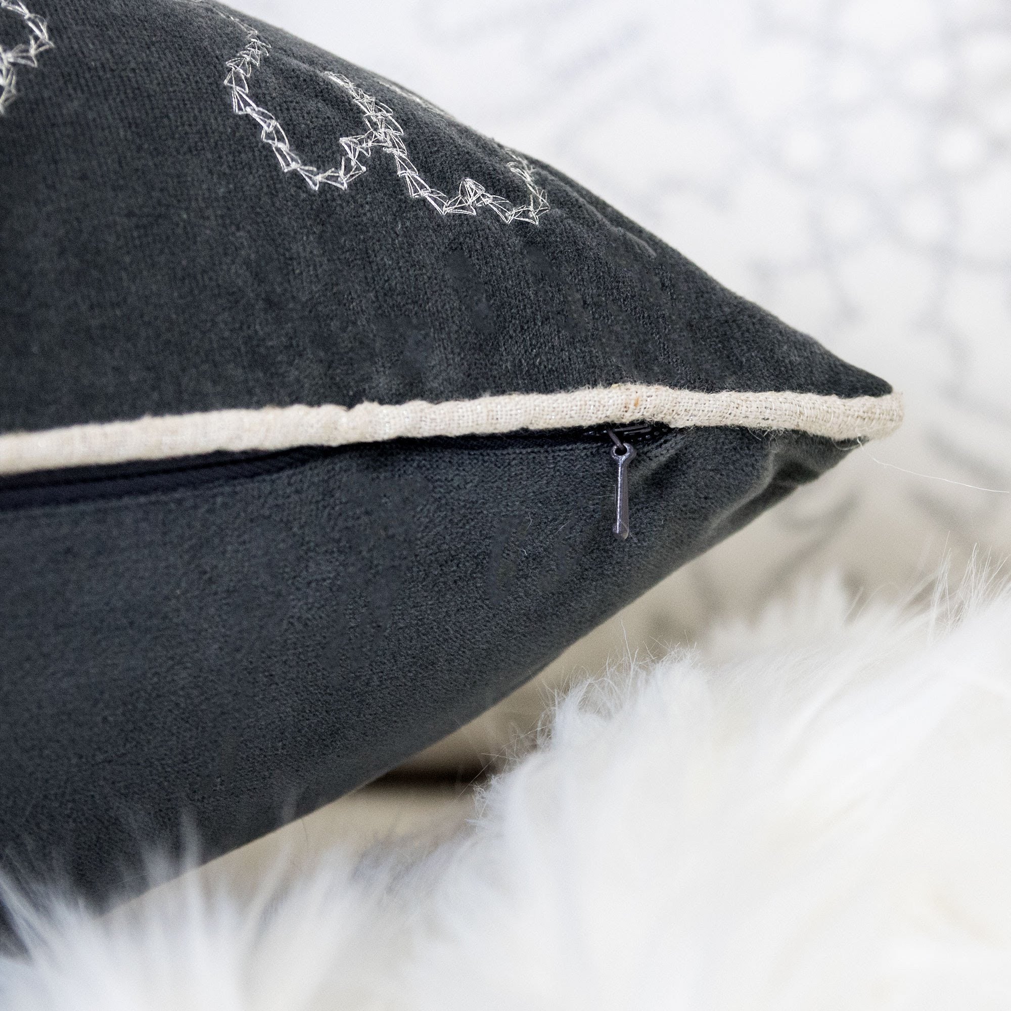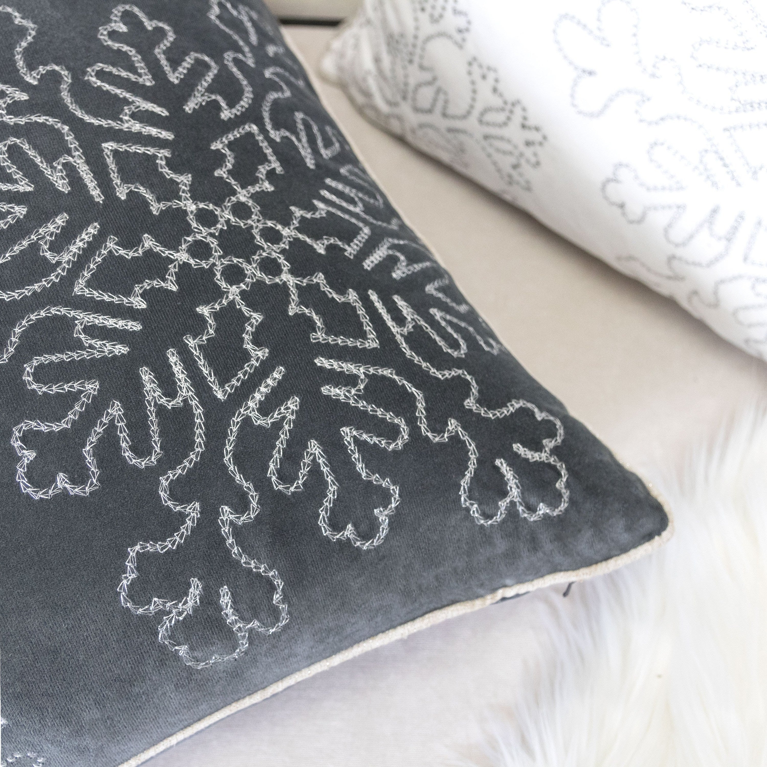 Silver Snowflake Embroidered Velvet Throw Pillow 20x20