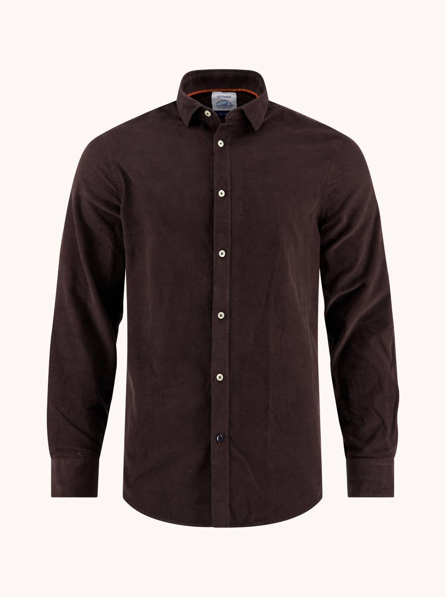 Introducing the Men's Corduroy Shirt by A Fish Named Fred, a classic piece with a modern twist. This shirt features long sleeves and a solid chocolate color, ideal for adding a touch of warmth to any spring ensemble. Made without pockets for a sleek, minimalist look, it closes with a button closure and is perfect for vacation wear. Embrace its soft ribbed fabric for a cozy, stylish fit.