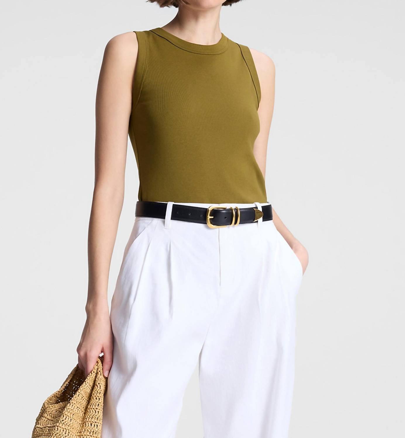 The perfect tank top for those warmer weather seasons. The Hadley Tank by A.L.C. is a chic addition to any wardrobe with its sleeveless design, perfect for warm summer days. Crafted from soft ribbed cotton, this tank in Hazel offers a clean, minimalist appeal with a crew neckline and wide straps. The pull-on closure enhances its effortless style, making it ideal for layering or standing out on its own. Ideal for a dinner party or quiet luxury events, this piece is tailored for women seeking both comfort and elegance.