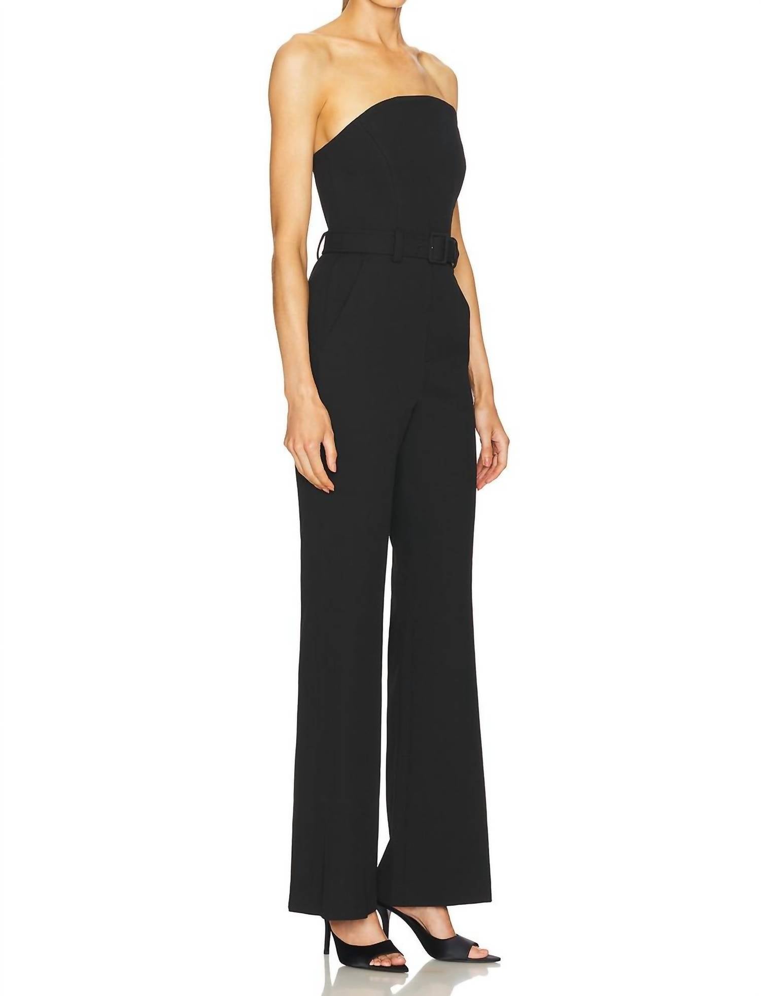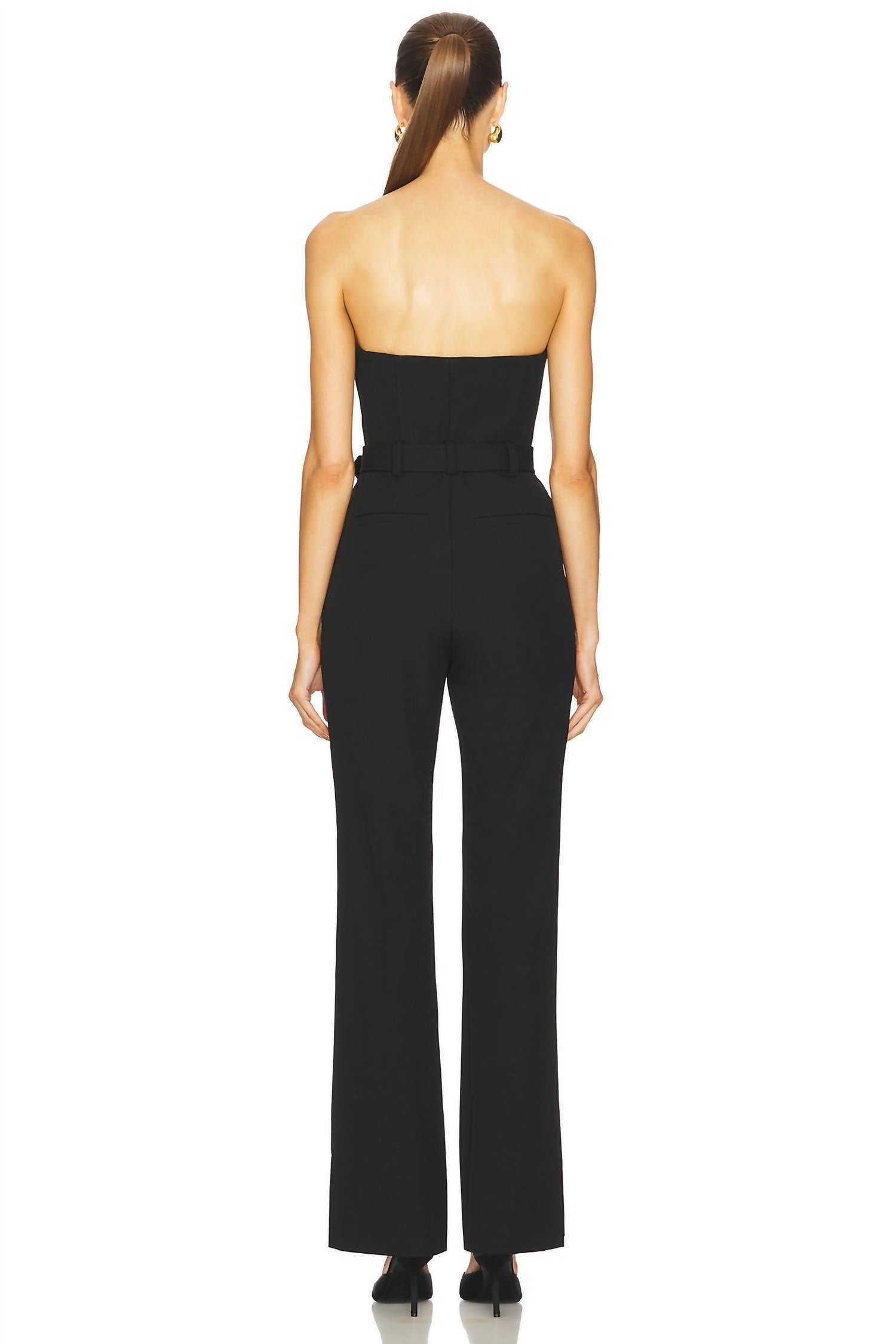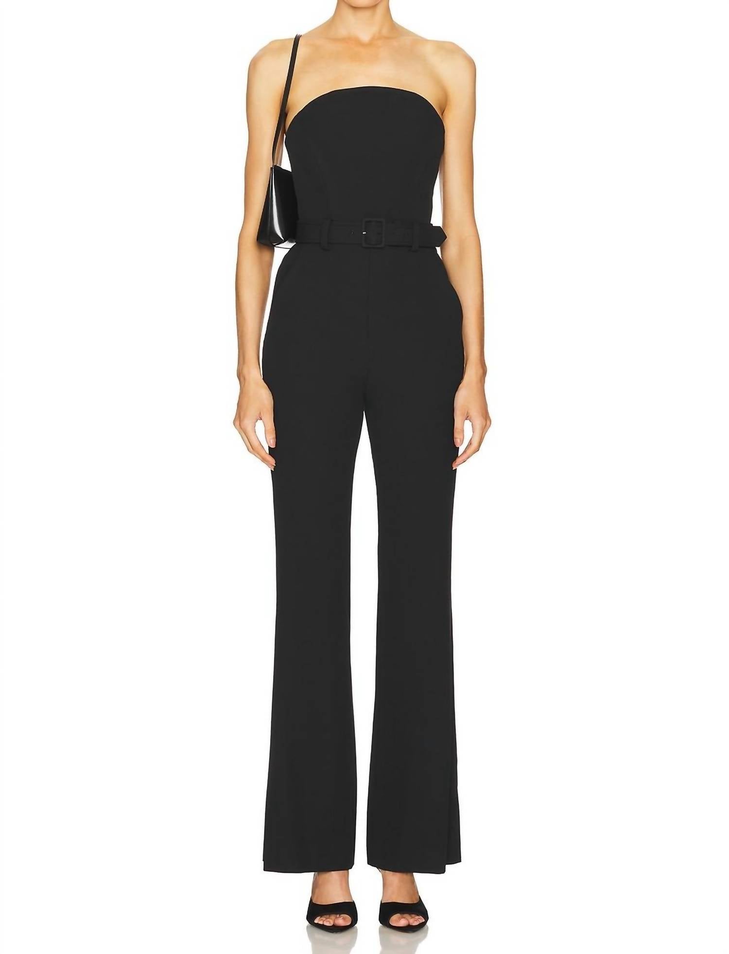 It doesn't take much for this one piece to look effortlessly cool. Add some statement jewelry to dress it up, or throw on some sneakers for a more casual vibe. Elevate your holiday party wardrobe with the Kate Strapless Belted Twill Jumpsuit by A.L.C., perfect for New Year's Eve with its chic, solid black design. This stylish piece features a relaxed fit with high-rise, flared legs, and practical slanted side pockets that add a functional touch. Made from a combination of 68% Polyester, 29% Viscose, and 3% Elastane, this jumpsuit offers a comfortable mid-weight feel with a concealed side zipper closure and internal boneless bodice for a seamless look. Care for this stunning jumpsuit with ease by opting for dry cleaning, keeping it in pristine condition for seasons to come.