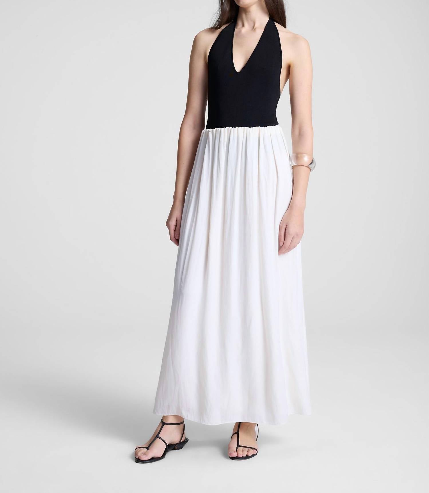 The Lila Bodysuit by A.L.C. offers a sleek, sculpting fit with its sleeveless design, composed of 62% Rayon, 35% Nylon, and 3% Elastane. This high-density knit fabric in a classic black hue features a deep V-neckline and open-back, delivering a smooth, elongated silhouette with a refined sheen. Garment length stands at 27 inches, complemented by a partially lined interior and convenient snap closure. For care, opt for hand washing or dry cleaning. Model is 5'9.5" wearing a size S (Bust 31", Waist 24", Hips 36").