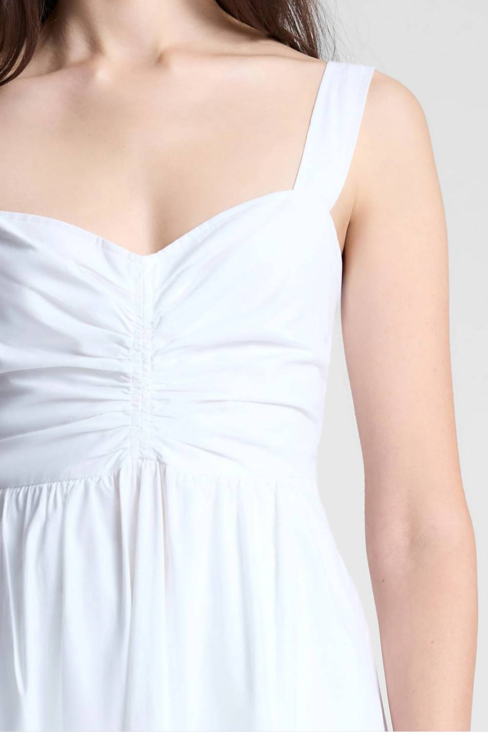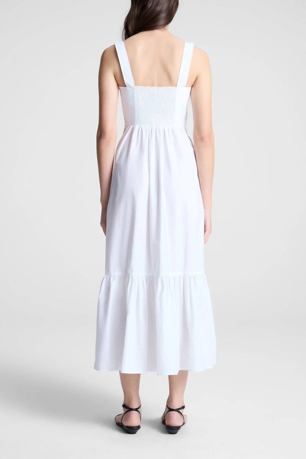 Just add slides or mules and you are good to go. Introducing the Lilah Midi Dress by A.L.C., a refined choice for your minimalist spring wardrobe. This crisp white dress is fashioned from 100% cotton, offering a breathable and comfortable wear with its pull-on closure. Crafted with thoughtful details like thick straps, a ruched bodice, and a smocked back, it gracefully extends to a flounce hem in an A-line silhouette. Perfect for vacation occasions, care for this stylish piece with dry cleaning to maintain its pristine condition.