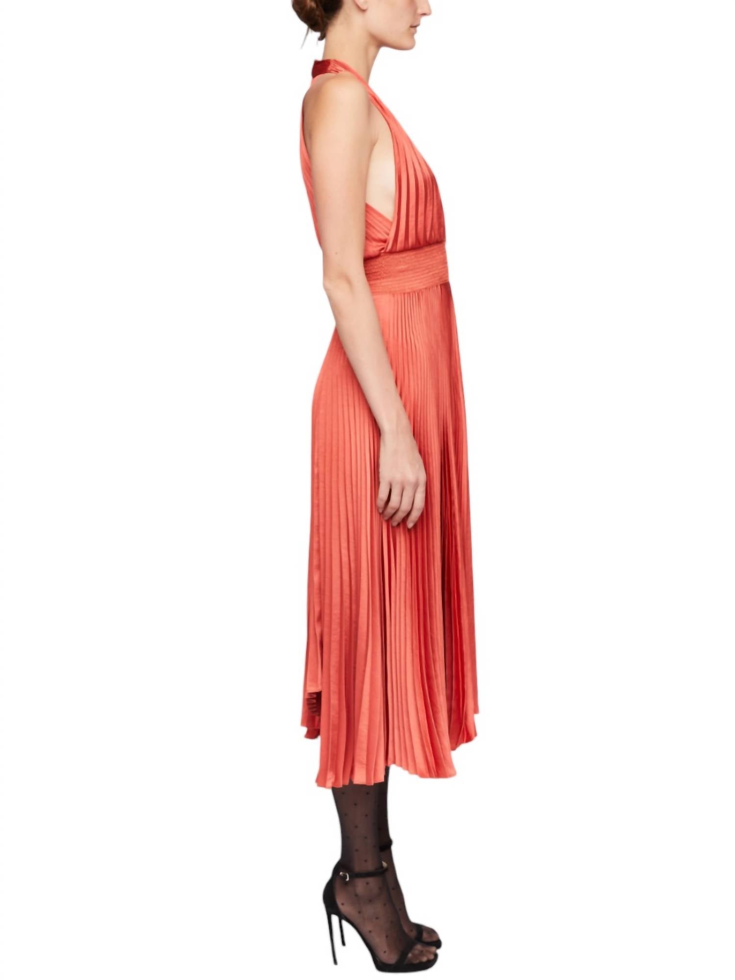 A midi dress so versatile, your options for wearing it are endless.The A.L.C. "Rose" midi dress is made of shiny polyester, featuring a smocked waist with pleating, halter neckline, sleeveless design, and an A-line silhouette that falls below the knee. Back button closure, fully lined in polyester.