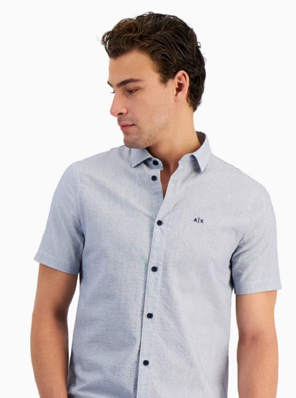 Remix your relaxed look with the bold combo of plaid and floral prints featured on this comfortable cotton camp shirt from A|X Armani Exchange.| Spread camp collar| Plaid-and-floral-print patterns; logo detailing at left chest and left hem | 100% cotton| Hand wash| Imported