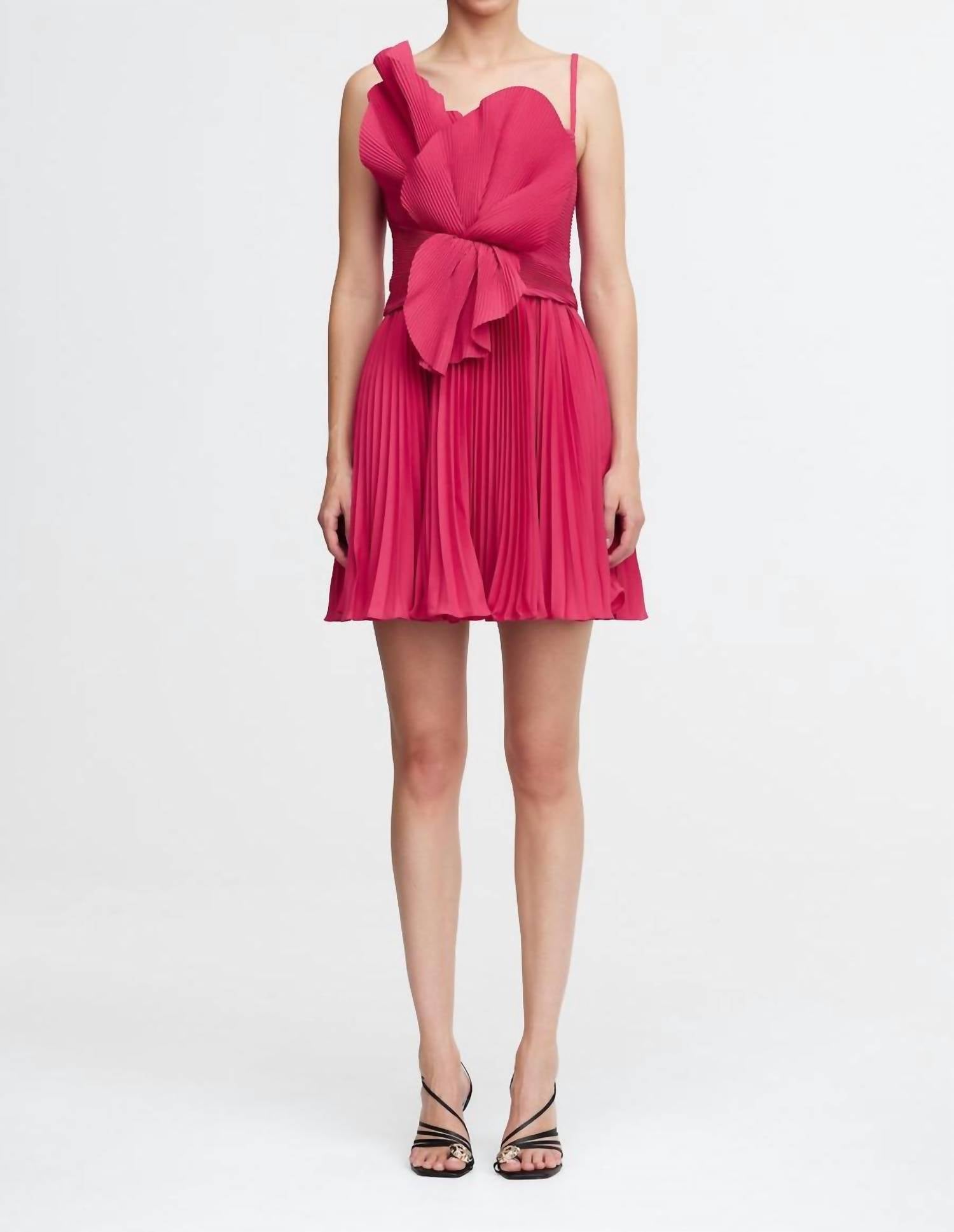 Introducing the ACLER Newtie Mini Dress in Berry Pink, a stunning choice for your next special occasion. This playful yet elegant dress features spaghetti straps and a flattering neckline, complemented by delicate pleating and a sculptural bow detail. It boasts an A-line silhouette with an invisible back zip closure for a seamless look and a fully lined composition made entirely of 100% polyester.
